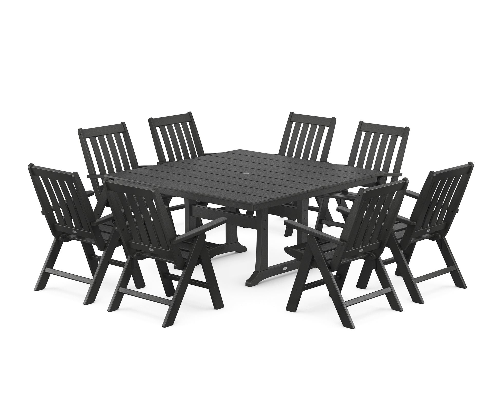 Vineyard Folding Chair 9-Piece Square Farmhouse Dining Set with Trestle Legs