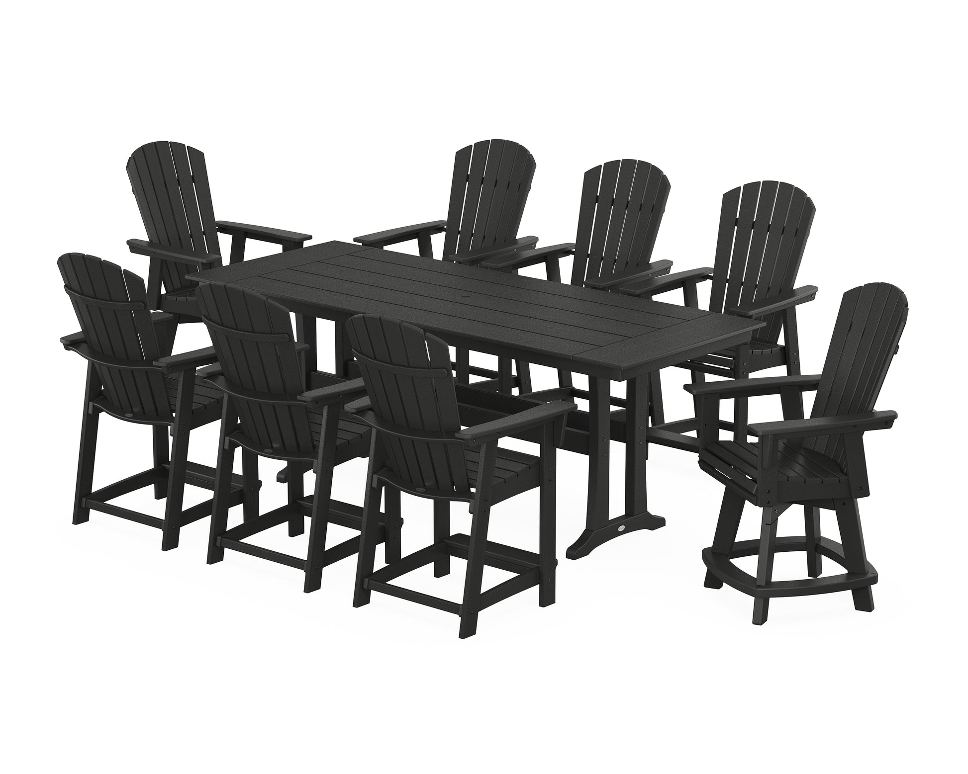 Nautical Curveback Adirondack Swivel Chair 9-Piece Farmhouse Counter Set with Trestle Legs