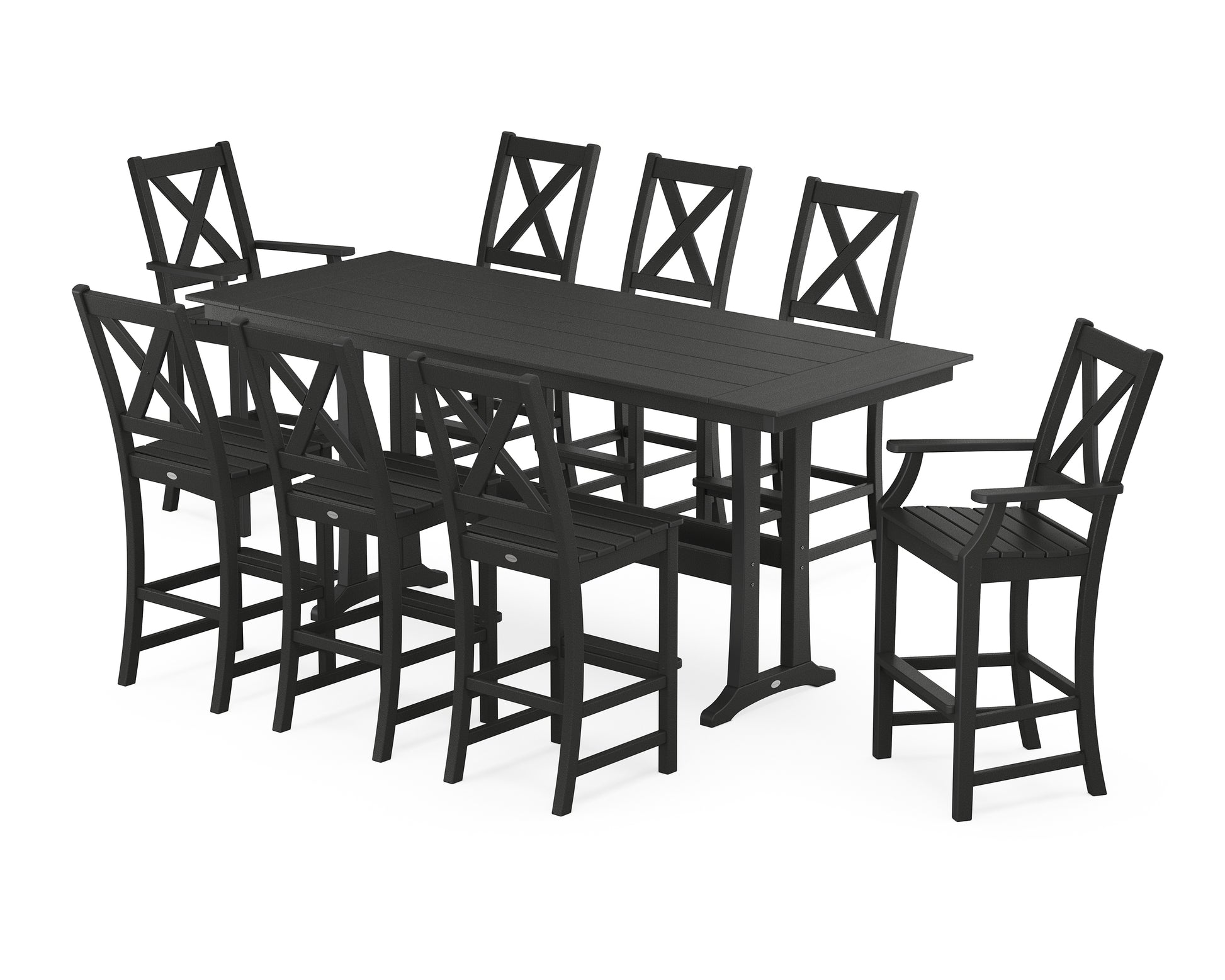 Braxton 9-Piece Farmhouse Bar Set with Trestle Legs