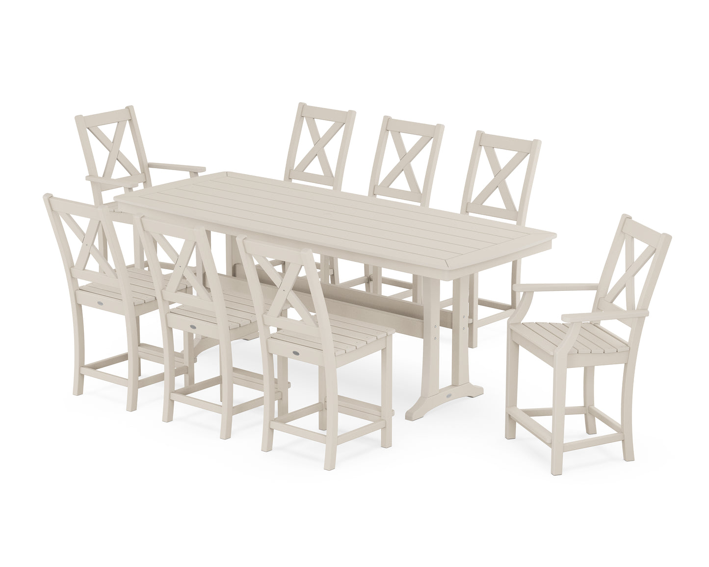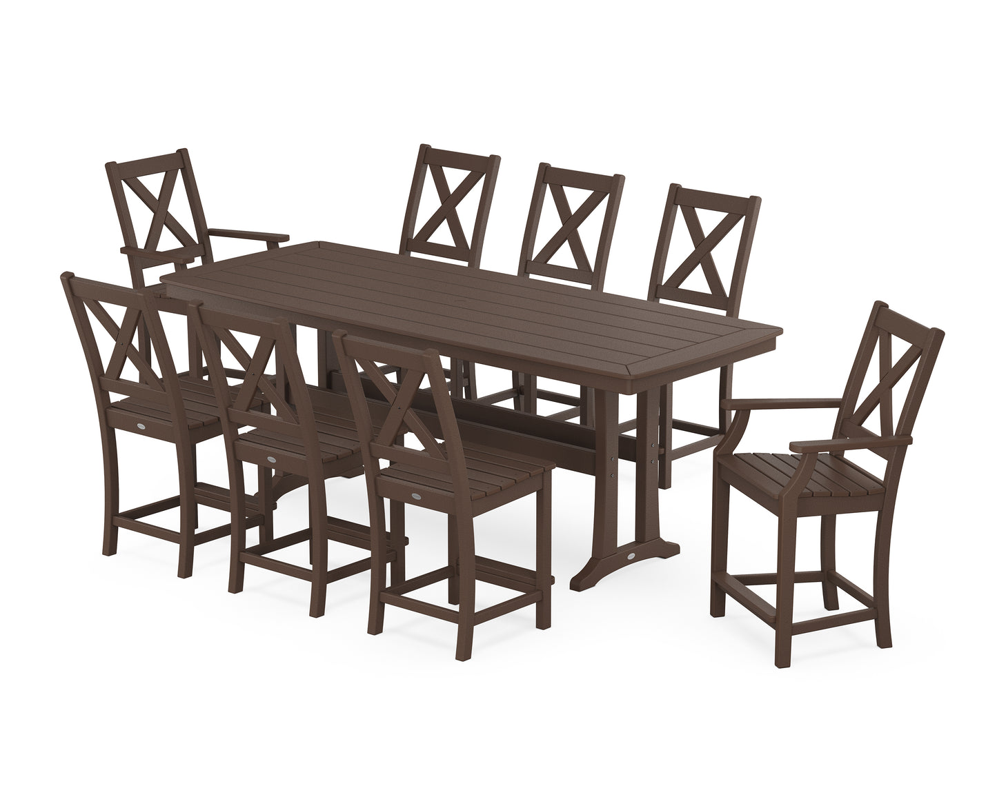 A balance of transitional design and rustic elements, the Braxton Collection is always a conversation starter with clean lines, curved profiles, and a farmhouse-inspired X-back design. Host large family dinners or invite the neighbors for game night with our Braxton 9-Piece Counter Set with Trestle Legs, which comfortably seats eight guests around an oversized table.