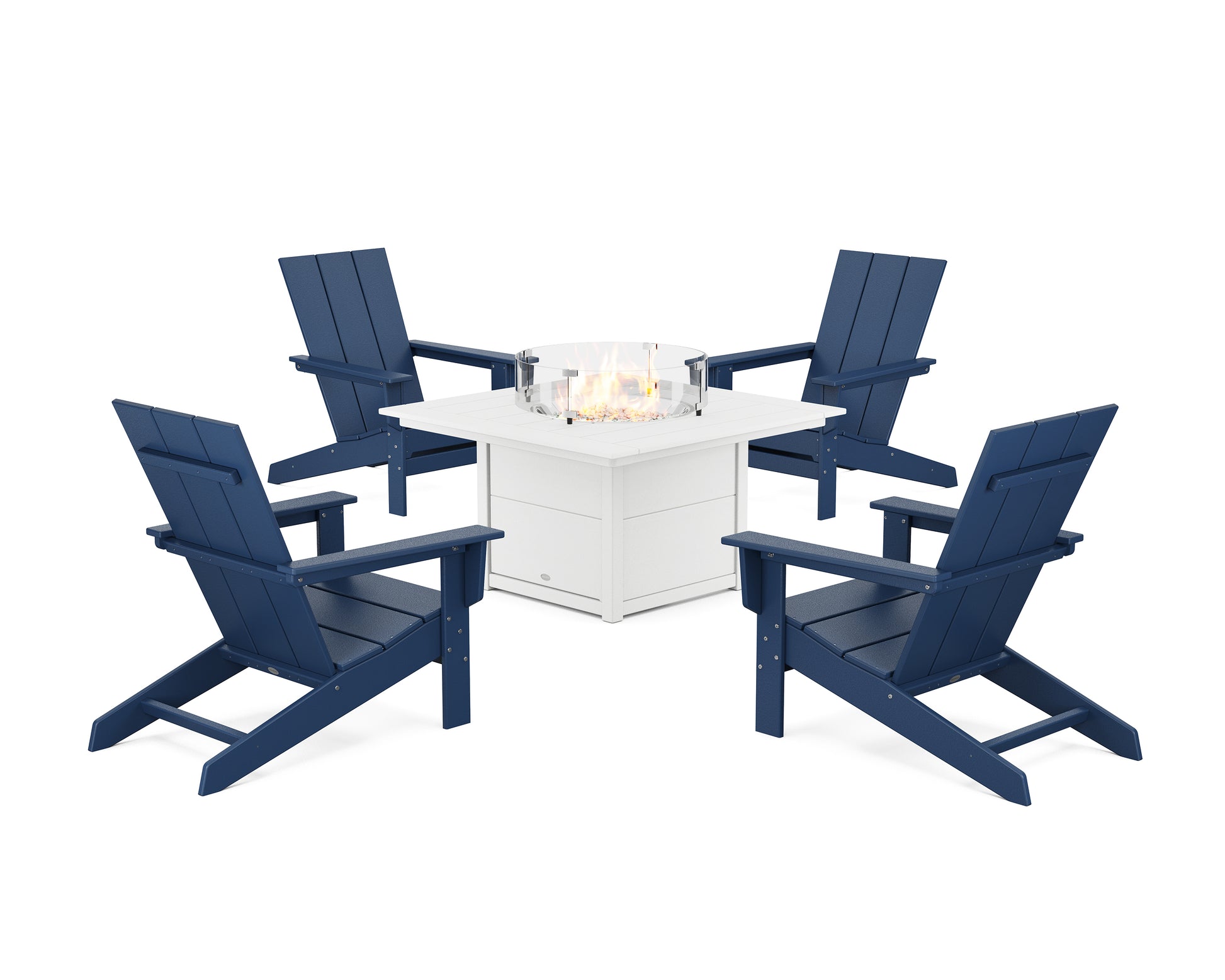 5-Piece Modern Studio Adirondack Conversation Set with Fire Pit Table