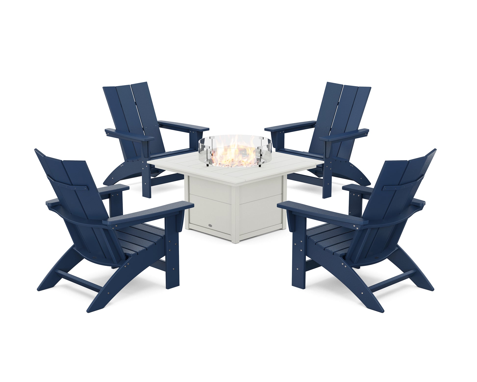 5-Piece Modern Grand Adirondack Conversation Set with Fire Pit Table