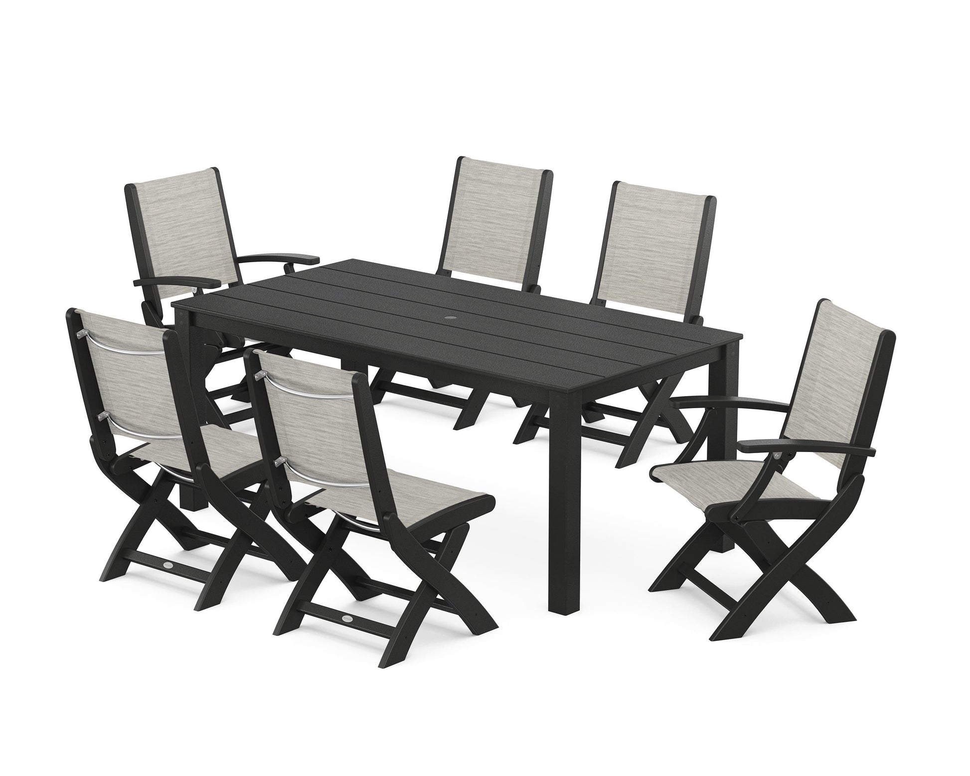 Coastal Folding Chair 7-Piece Parsons Dining Set