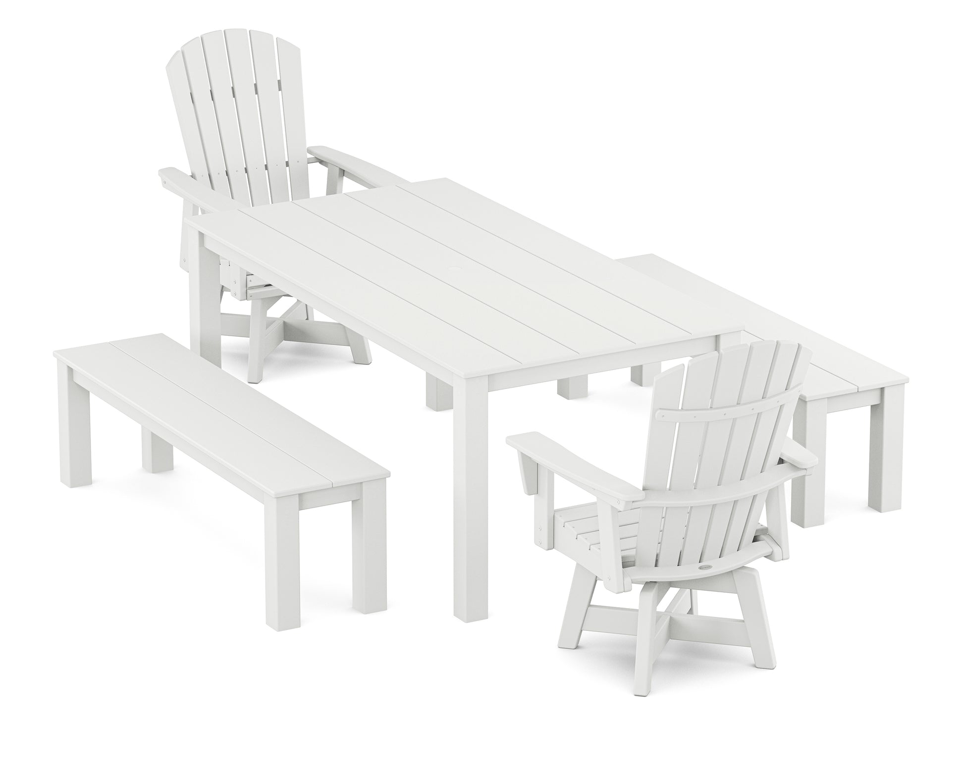 Nautical Curveback Adirondack Swivel 5-Piece Parsons Dining Set with Benches