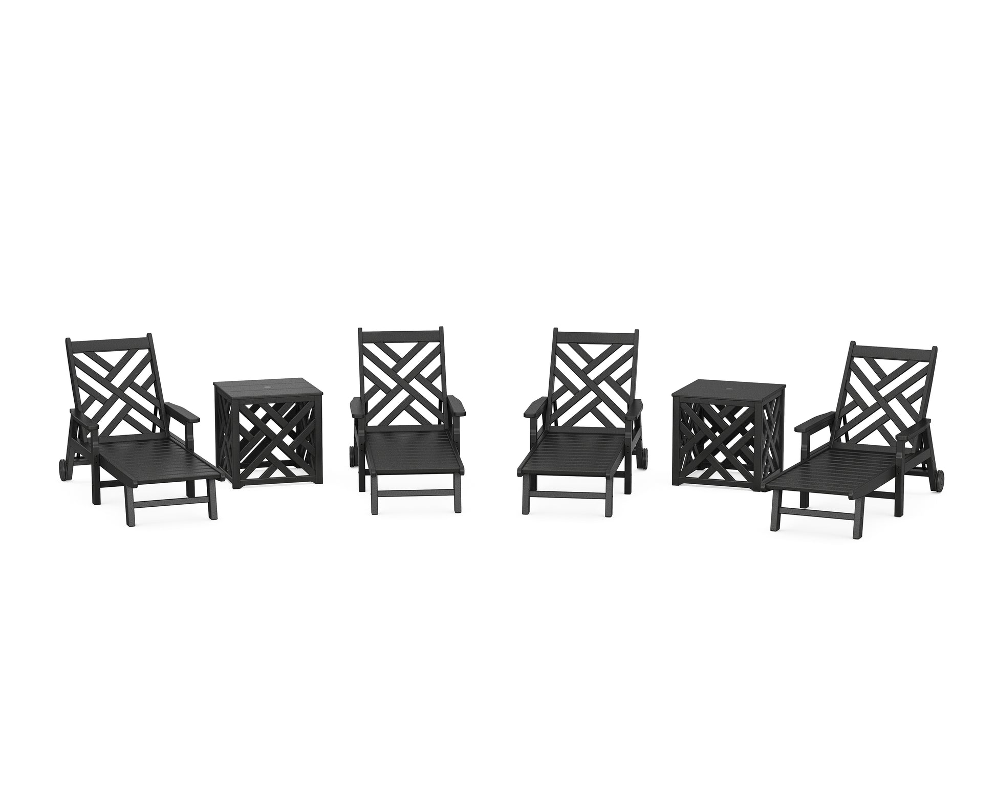 When it comes to enduring style, our Chippendale 6-Piece Chaise Set with Umbrella Stand Accent Table reigns supreme. These styles are inspired by 18th-century designs but built with heavy-duty materials and modern functionality that take seasonal elements and everyday living in stride. Open, airy, and elegant, this set shines on sundecks or poolside patios.