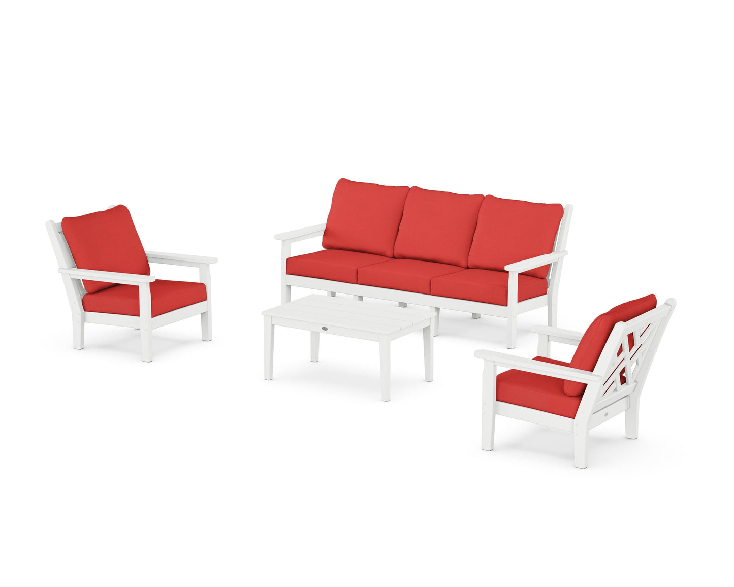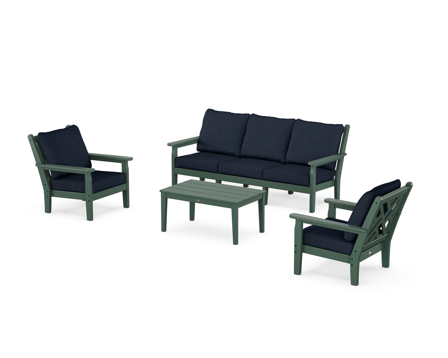When it comes to enduring style, our Chippendale 4-Piece Deep Seating Set with Sofa reigns supreme. The seating is inspired by 18th-century designs but built with heavy-duty materials that take seasonal elements and everyday use in stride. A versatile accent table brings it all together to create the coziest outdoor living quarters.