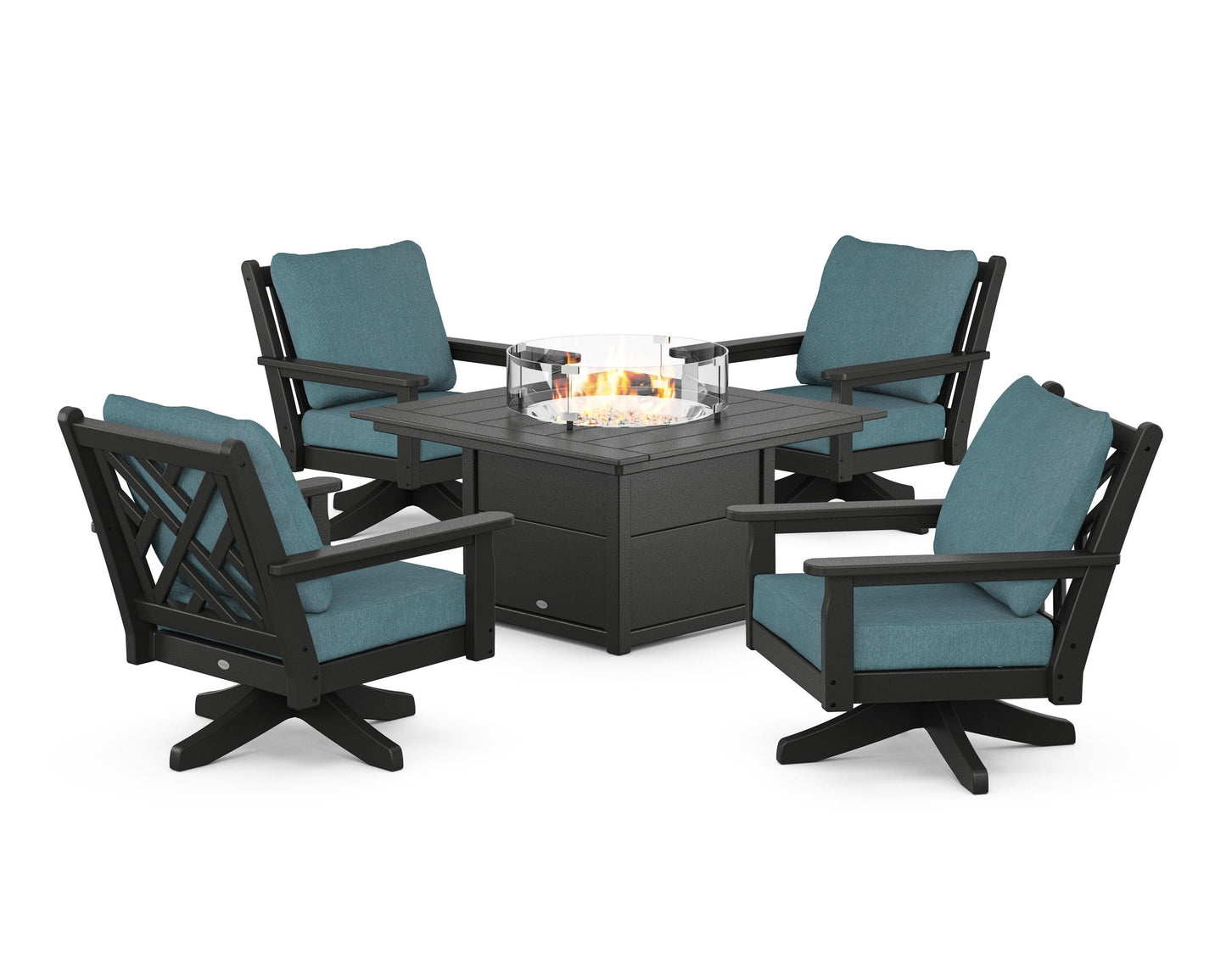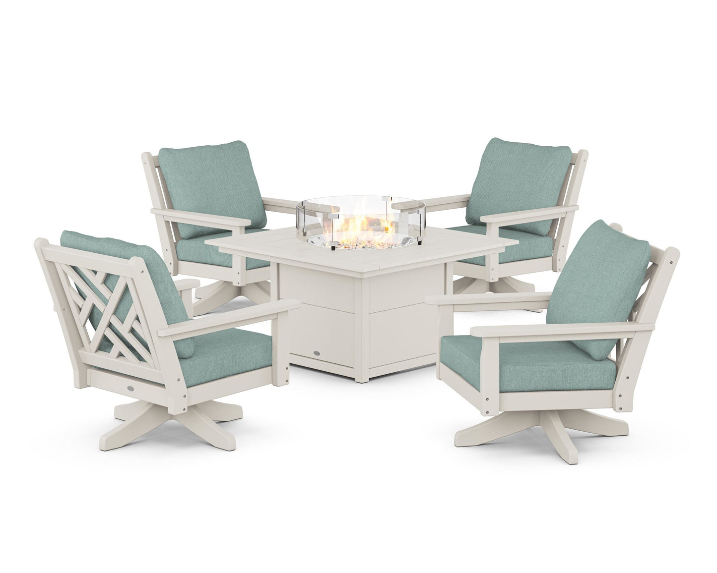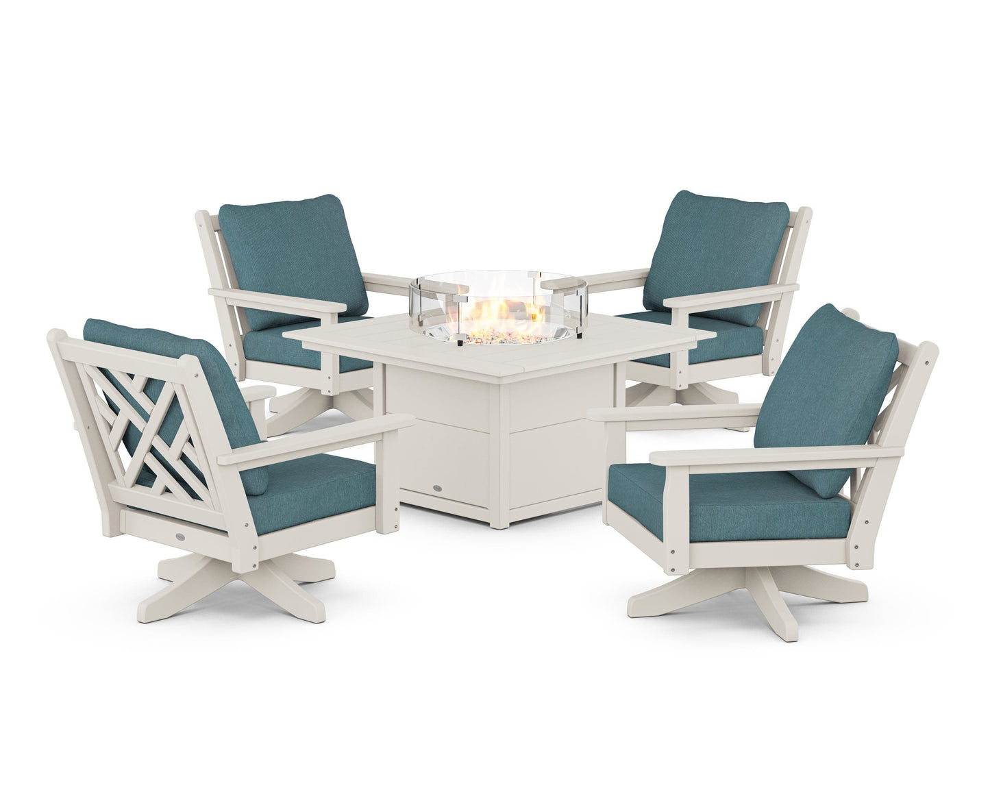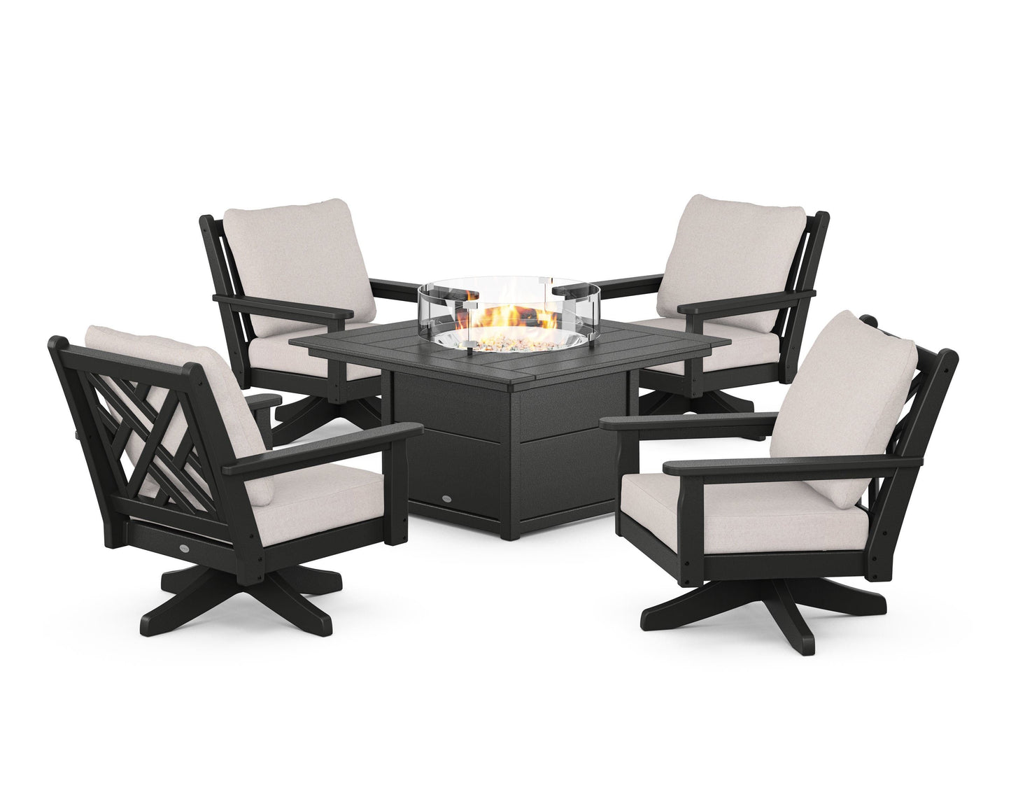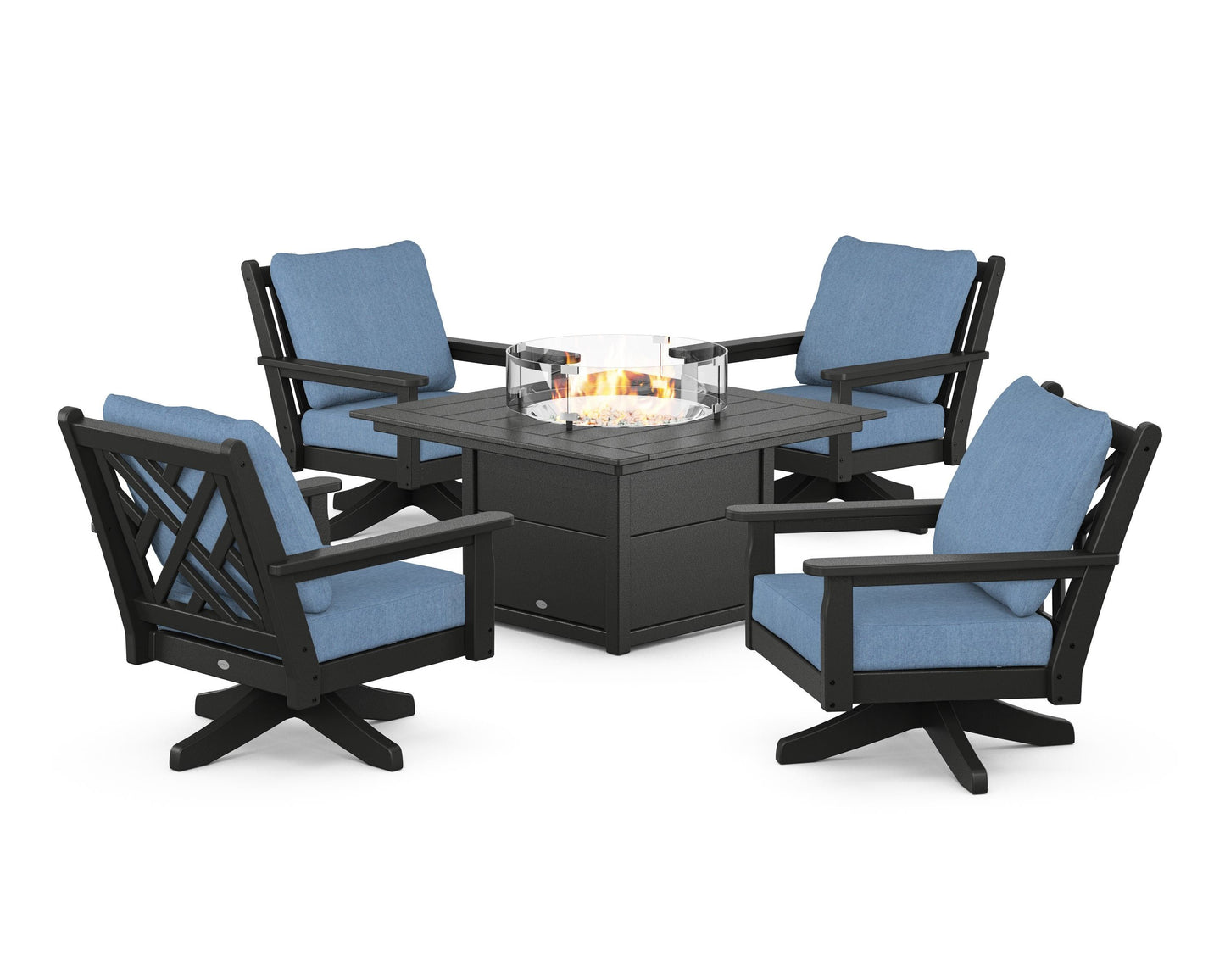 Chippendale 5-Piece Deep Seating Swivel Conversation Set with Fire Pit Table