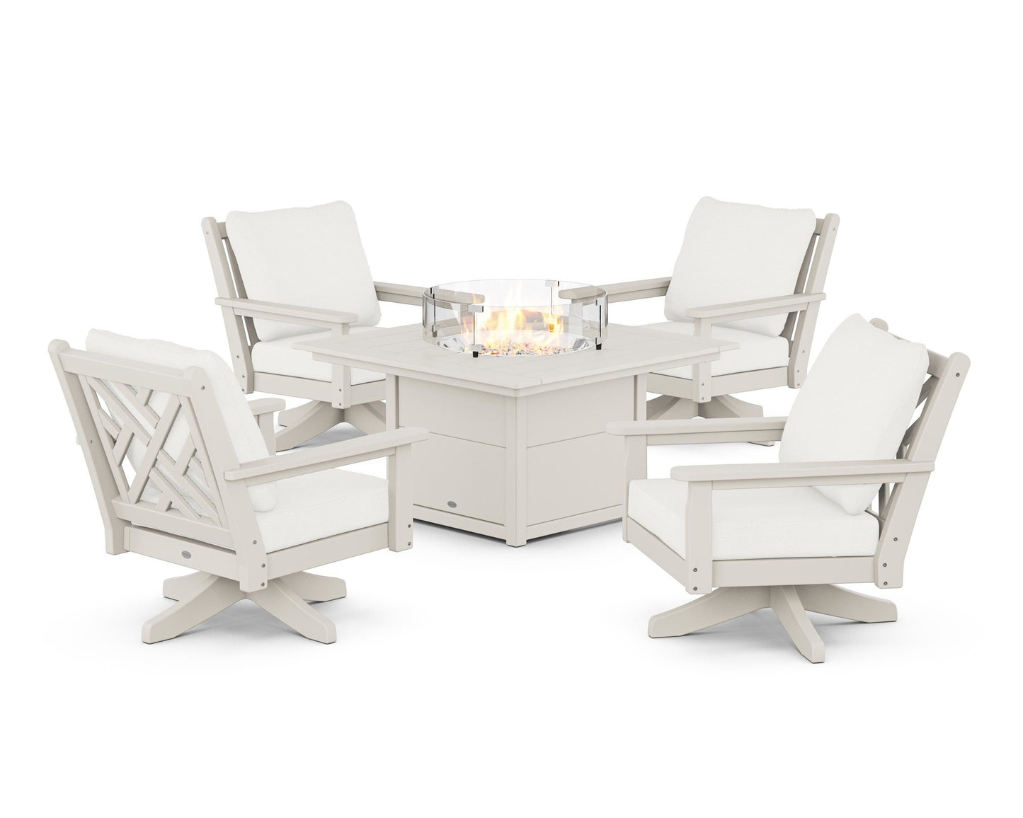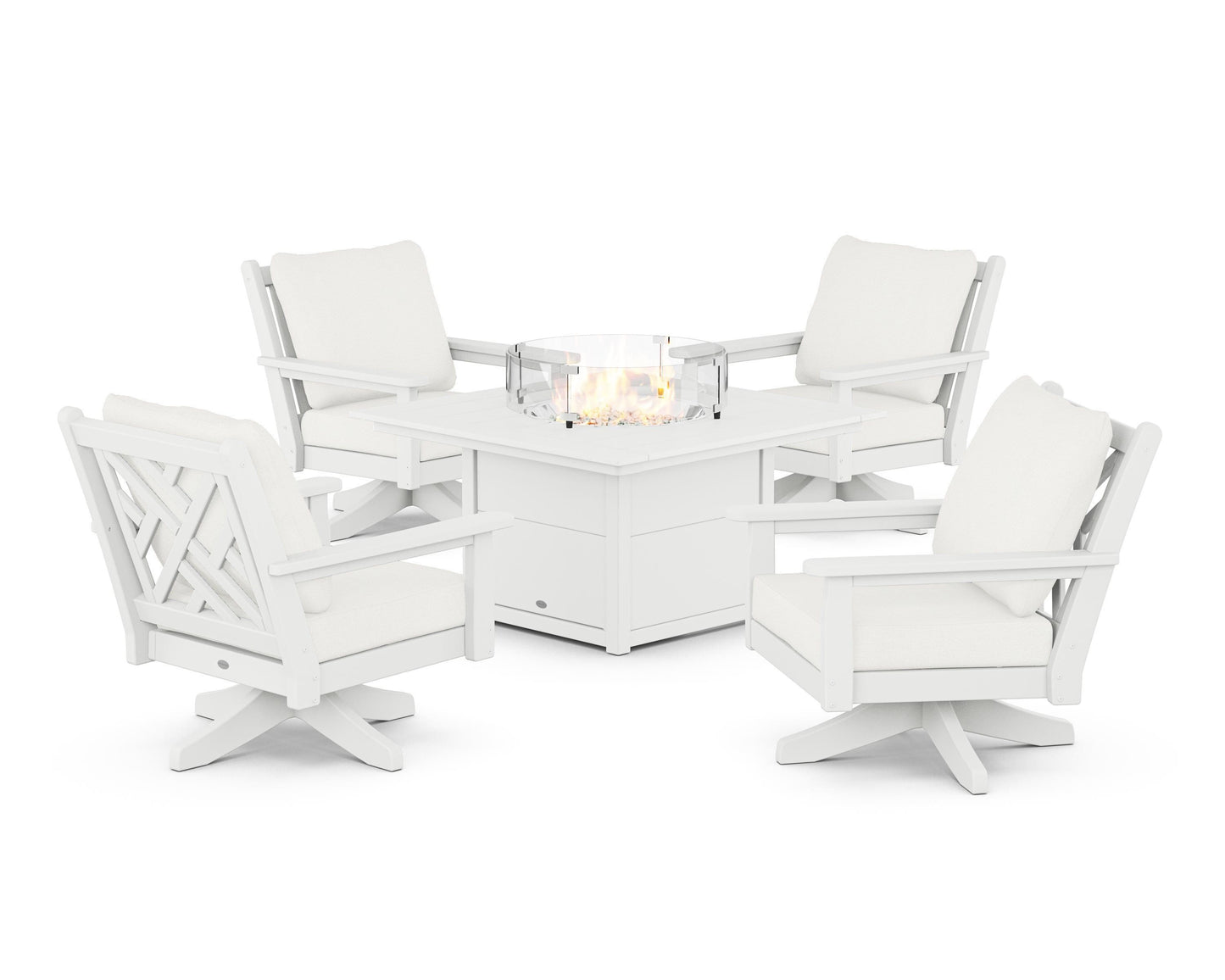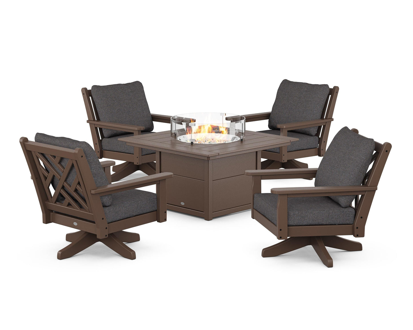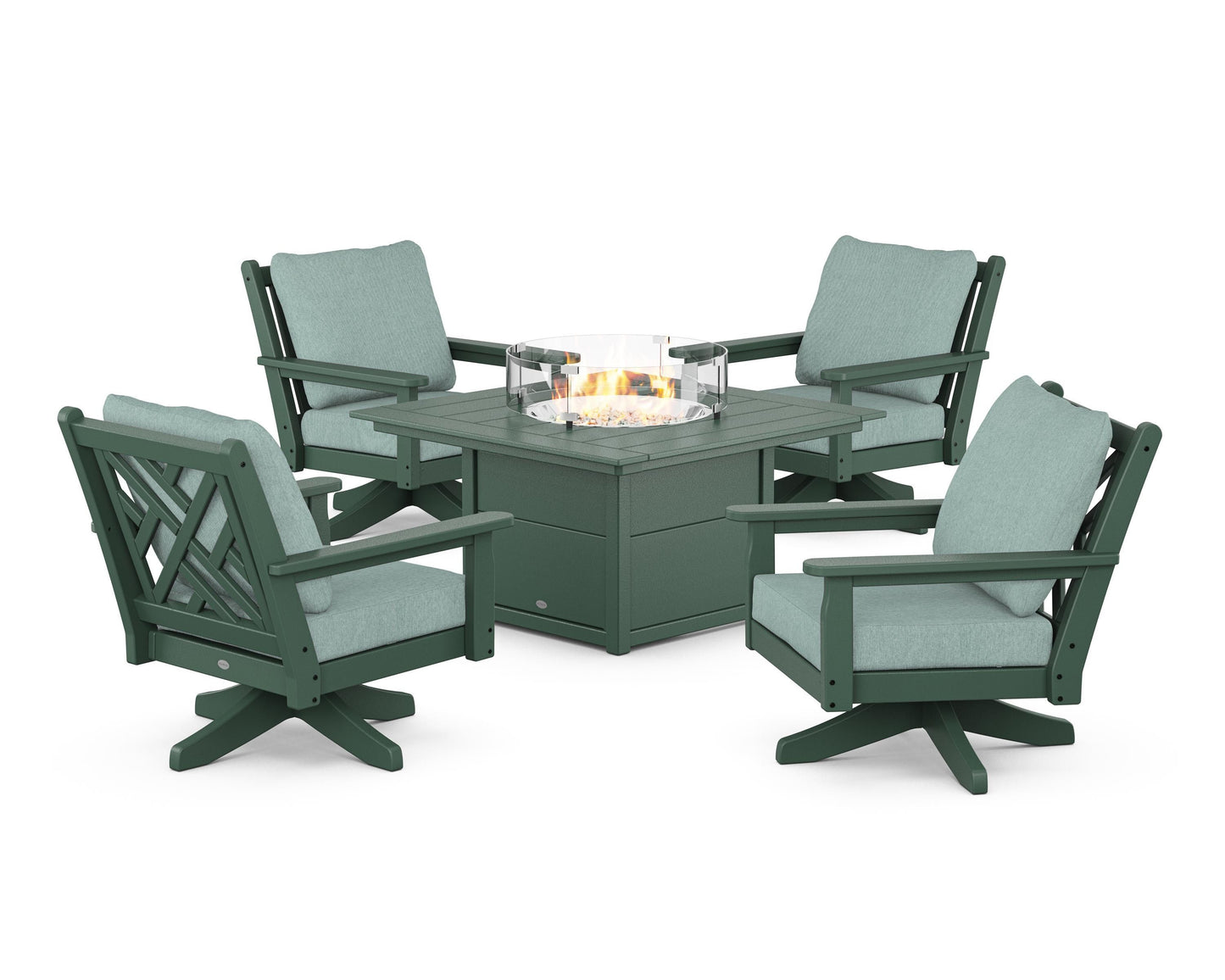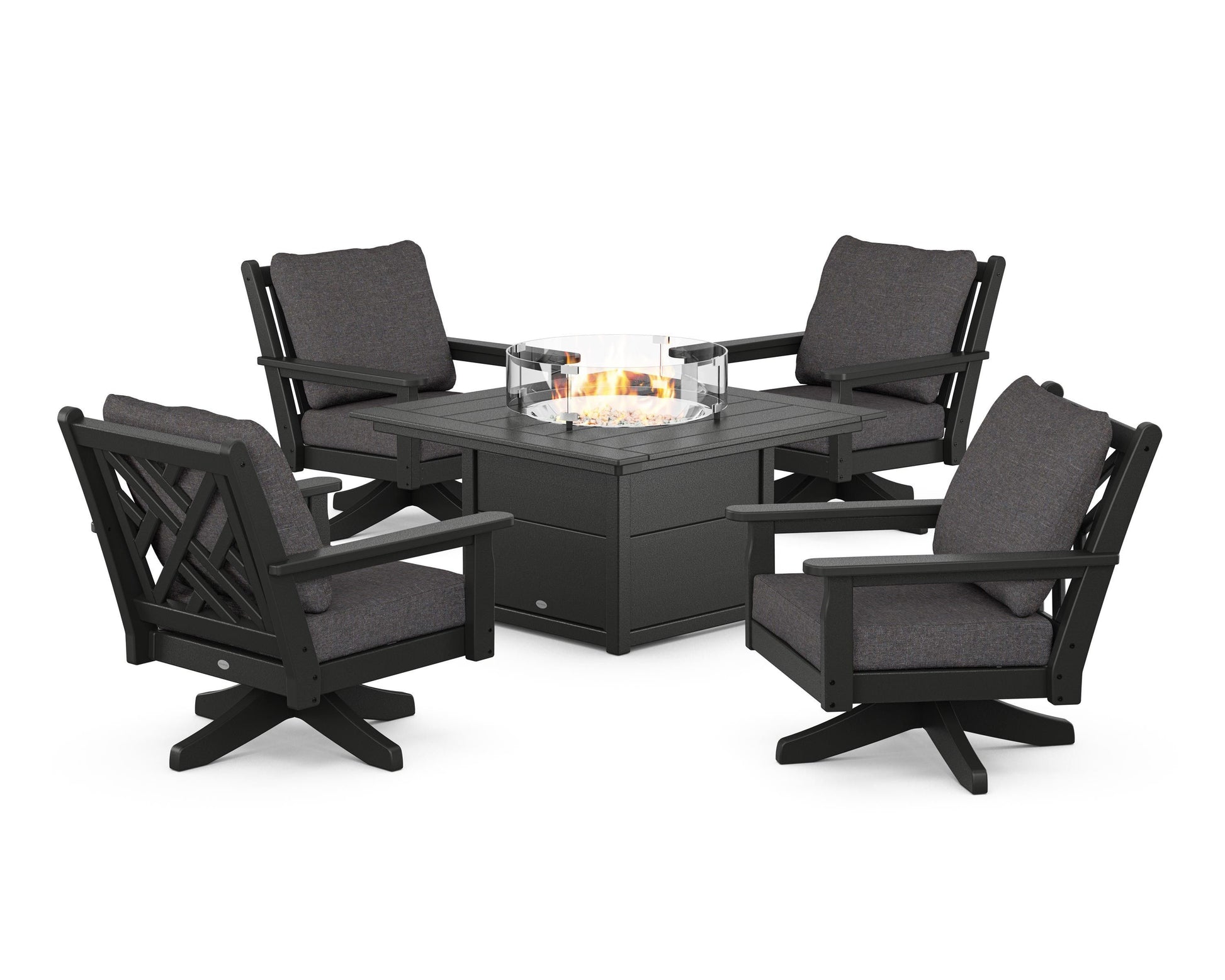 Chippendale 5-Piece Deep Seating Swivel Conversation Set with Fire Pit Table