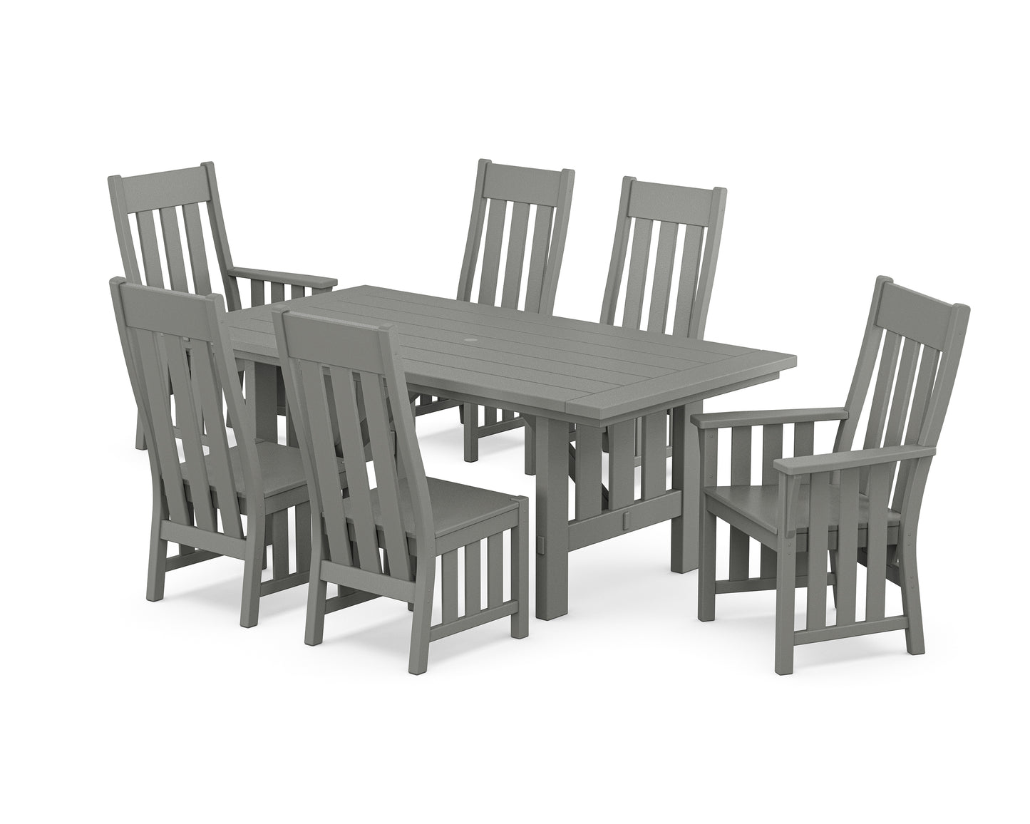The Martha Stewart by POLYWOOD Acadia 7-Piece Dining Set celebrates a return to the forms of Craftsman furniture, defined by strong vertical lines that lend a subtle sense of grandeur. Decorative details on the table and chairs emulate traditional woodworking joinery. This all-weather collection was inspired by pieces at Martha Stewart's residence in Maine, a bucolic beauty built in the 1920s.