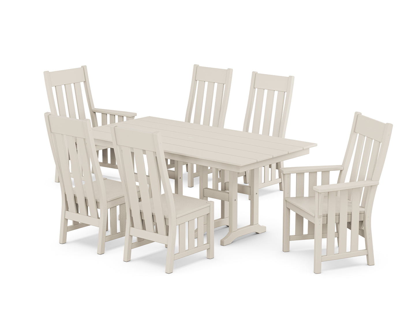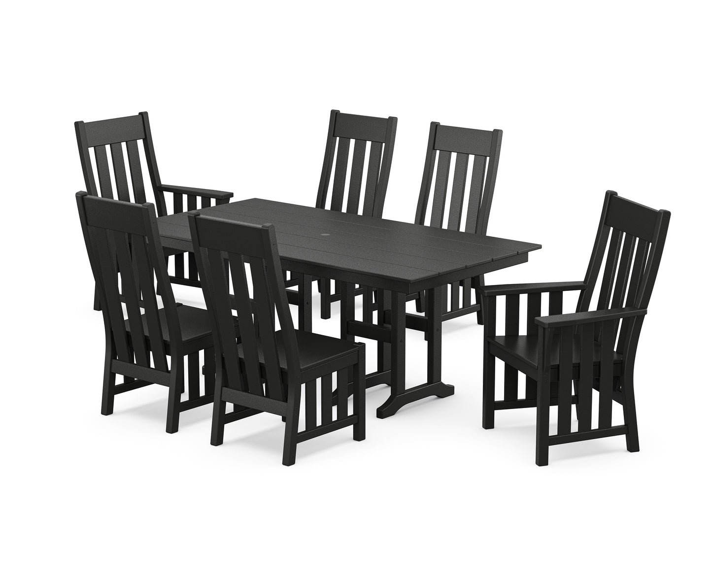 The Martha Stewart by POLYWOOD Acadia 7-Piece Farmhouse Dining Set celebrates a return to the forms of Craftsman furniture, defined by strong vertical lines that lend a subtle sense of grandeur. Decorative details on the chairs emulate traditional woodworking joinery. This all-weather collection was inspired by pieces at Martha Stewart's residence in Maine, a bucolic beauty built in the 1920s.