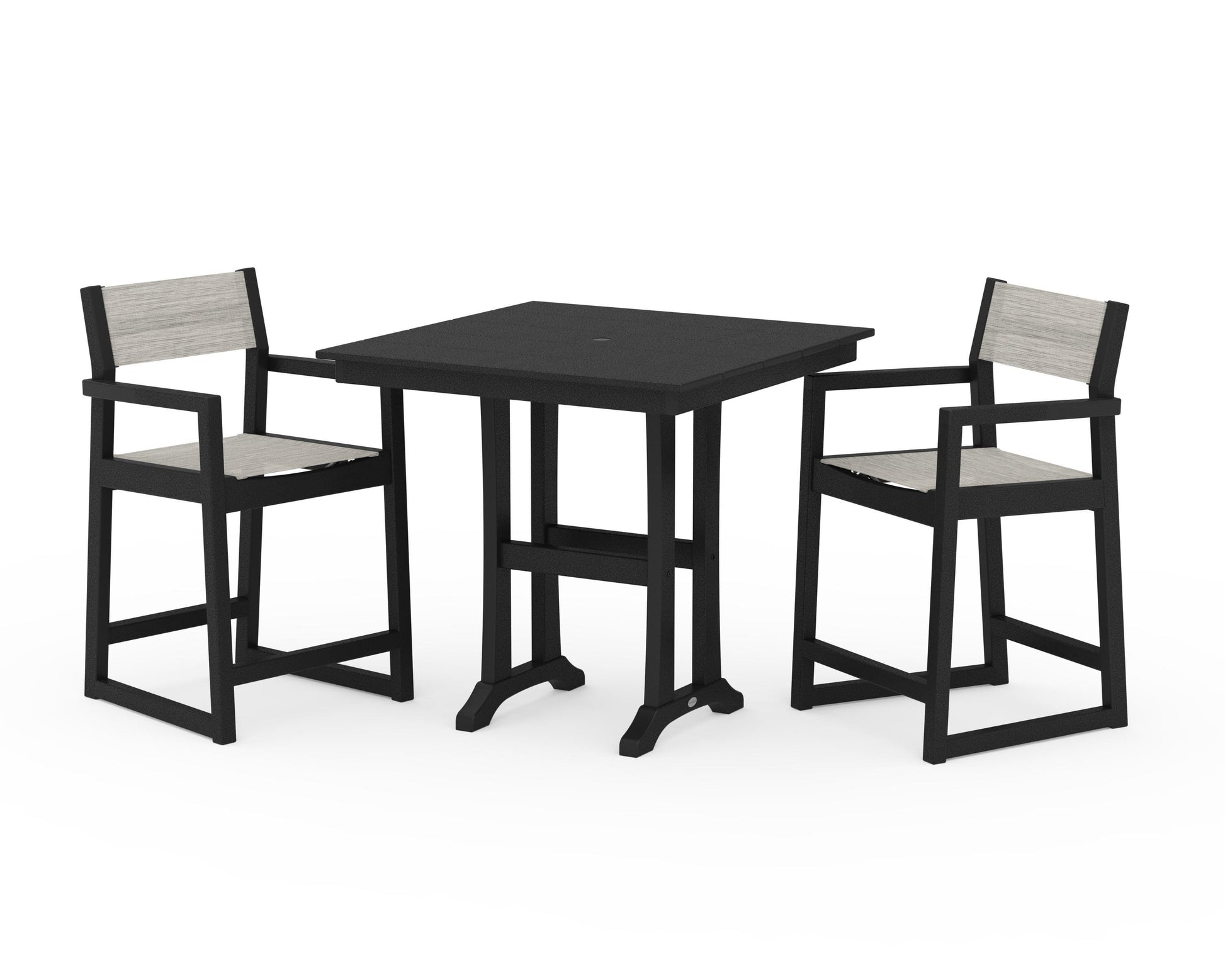EDGE Sling Arm Chair 3-Piece Farmhouse Counter Set with Trestle Legs