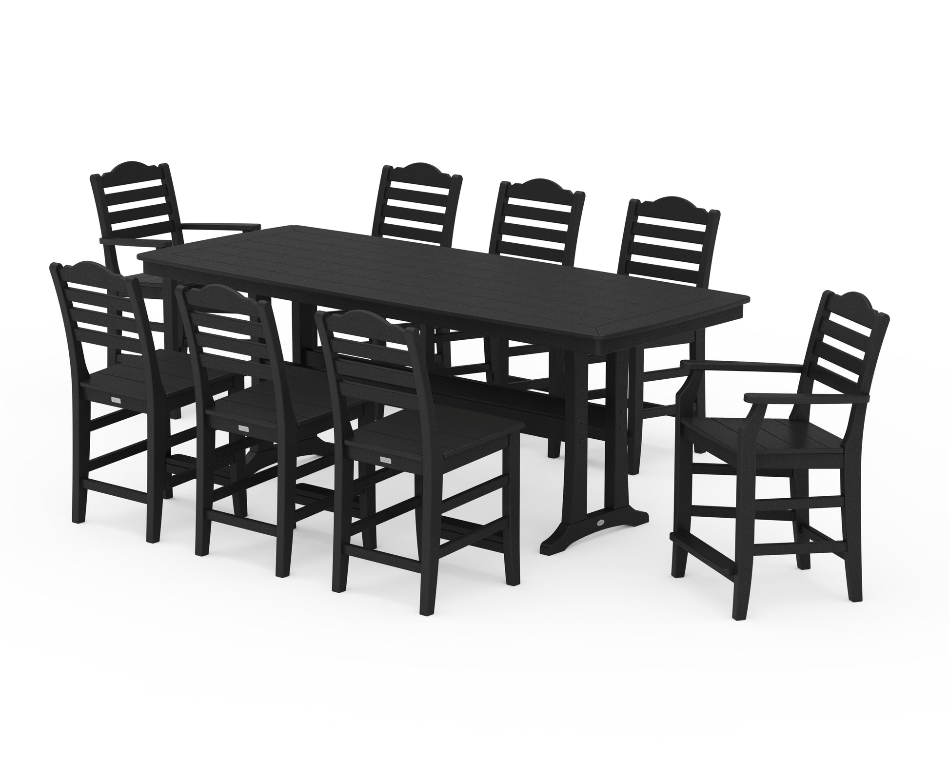 Heritage design. Modern all-weather durability. Sweet scalloped details. This exclusive collection is our love letter to Southern charm and hospitality. With space for eight, the Draper James by POLYWOOD Savannah 9-Piece Counter Set with Trestle Legs invites folks to gather together and brings daily life back outside.