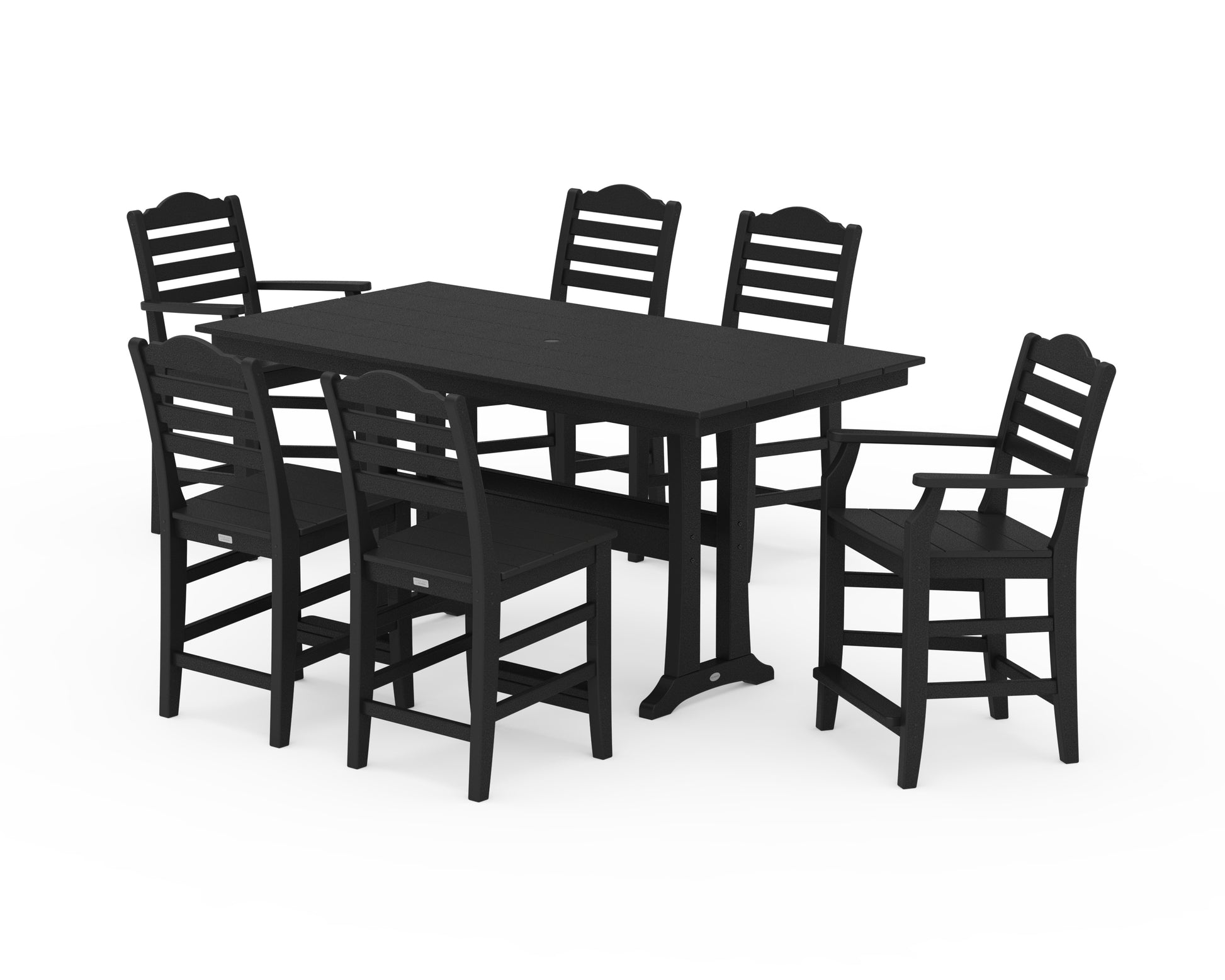 Heritage design. Modern all-weather durability. Sweet scalloped details. This exclusive collection is our love letter to Southern charm and hospitality. With space for six, the Draper James by POLYWOOD Savannah 7-Piece Farmhouse Counter Set with Trestle Legs invites folks to gather together and brings daily life back outside.