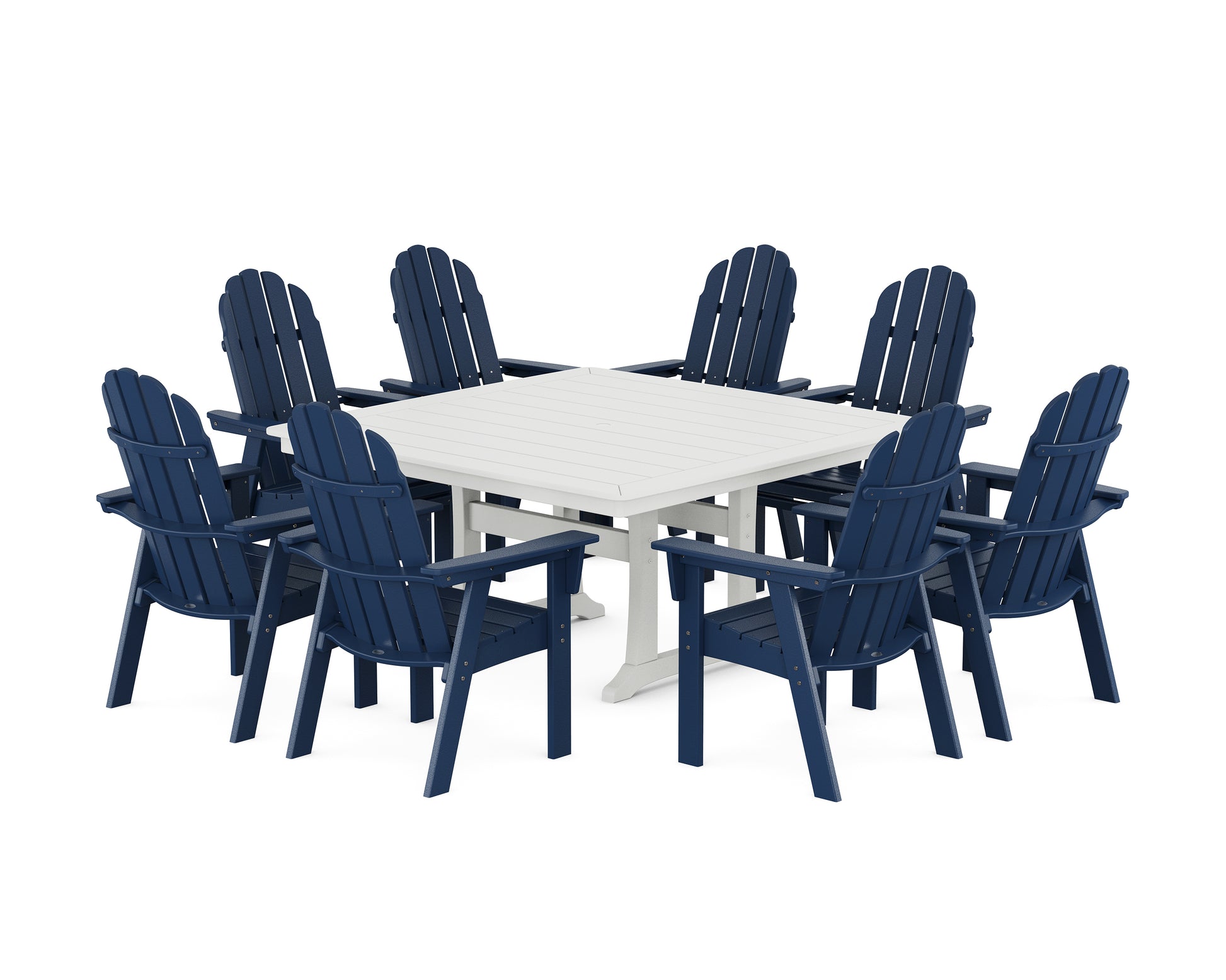 Vineyard Curveback Adirondack 9-Piece Nautical Trestle Dining Set