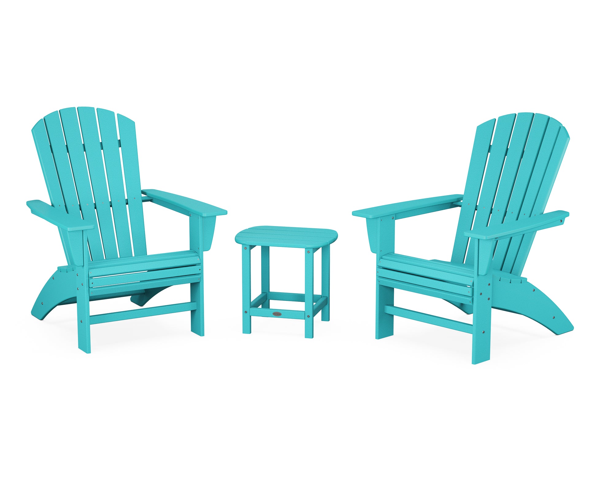 With the Nautical 3-Piece Curveback Adirondack Set, you and your best friend can sit back with your drinks of choice and enjoy each others' company. The Nautical Curveback Adirondack Chairs have curved back slats and waterfalls front for added comfort, and a tasteful fanback design and sleek leg profile. This set is completed by a matching South Beach 18" Side Table. Want to look good and feel great at the same time? This set is just what you need.