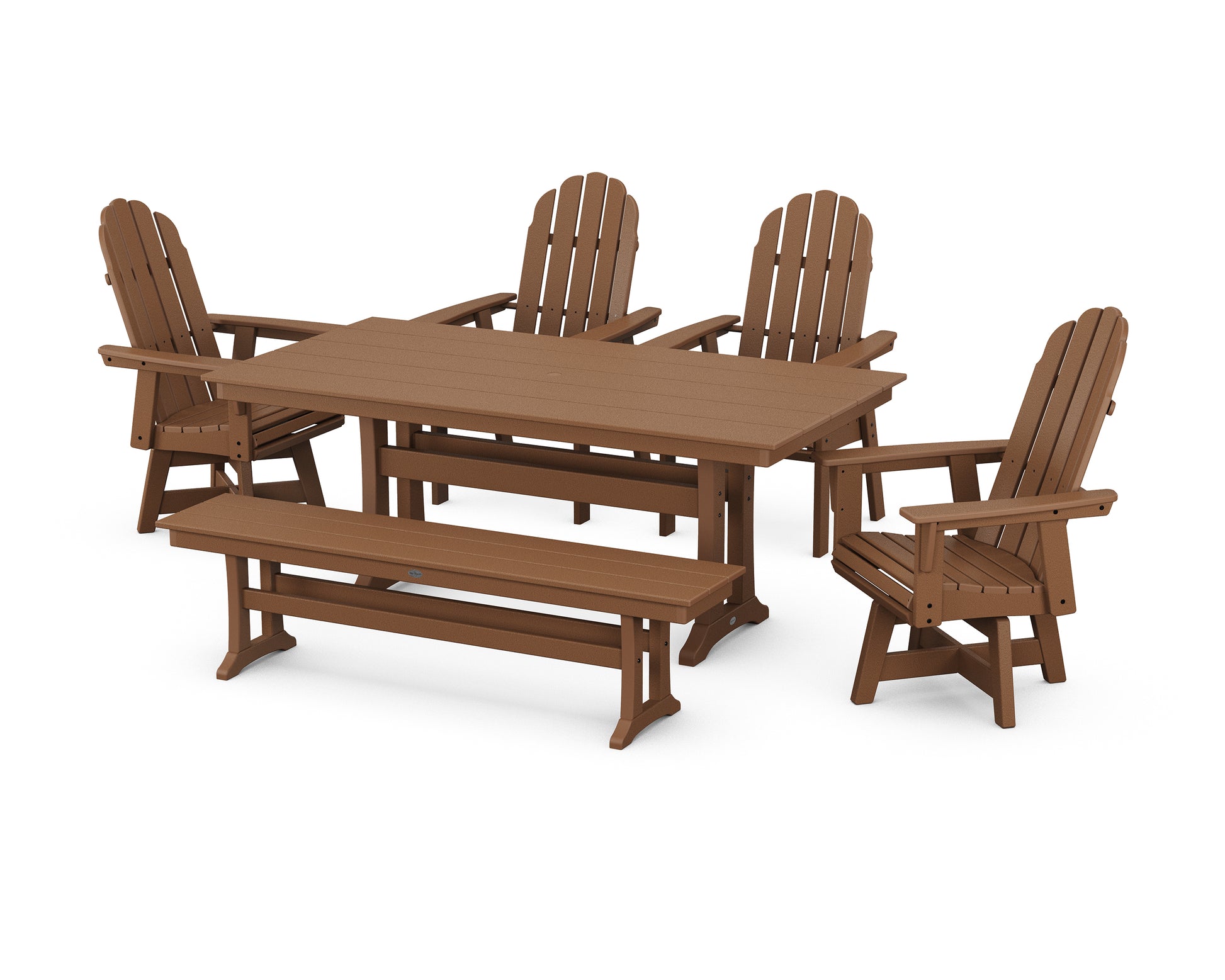 Vineyard Curveback Adirondack 6-Piece Swivel Chair Farmhouse Dining Set with Trestle Legs and Bench