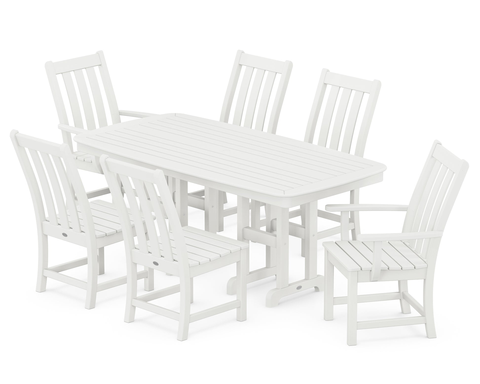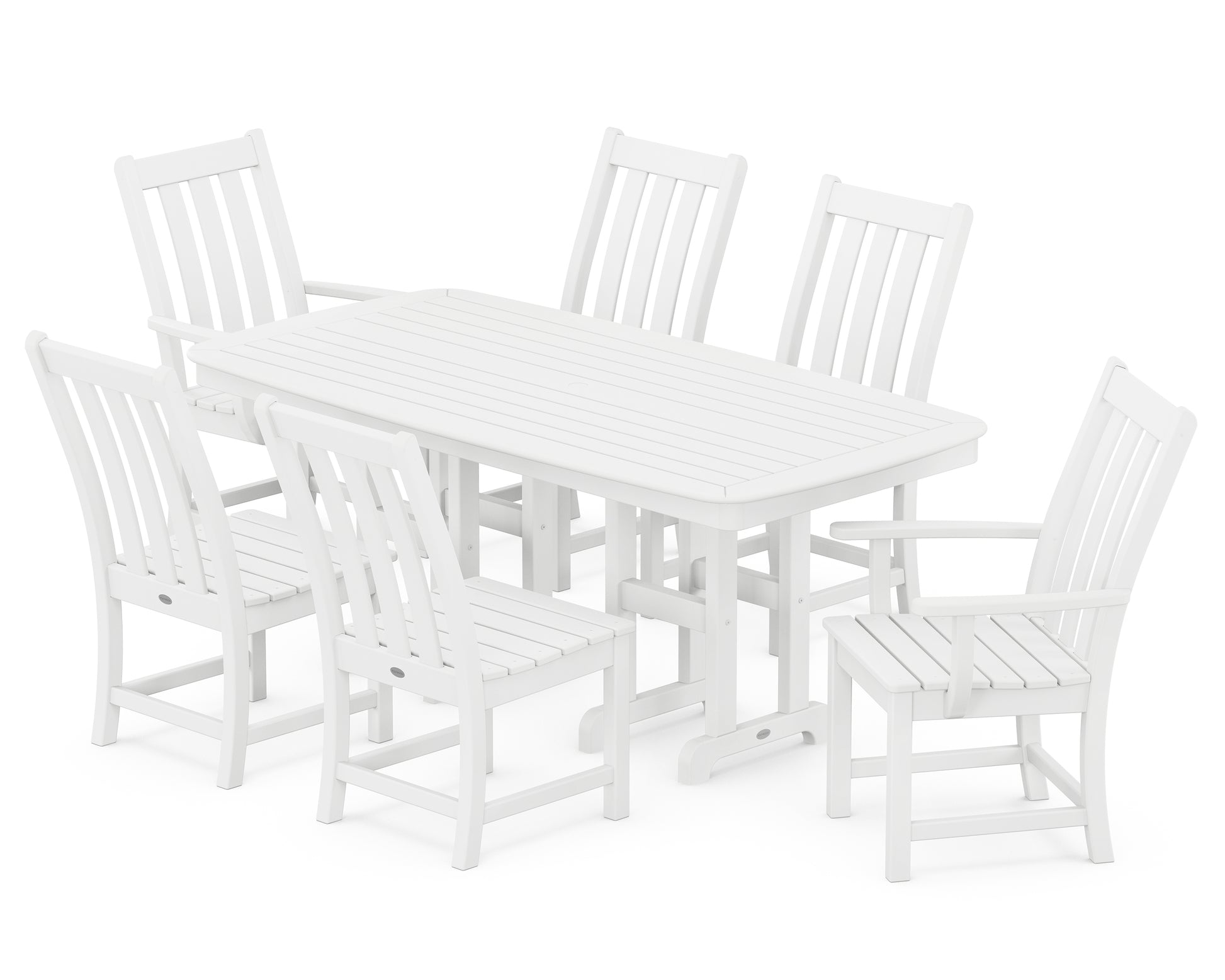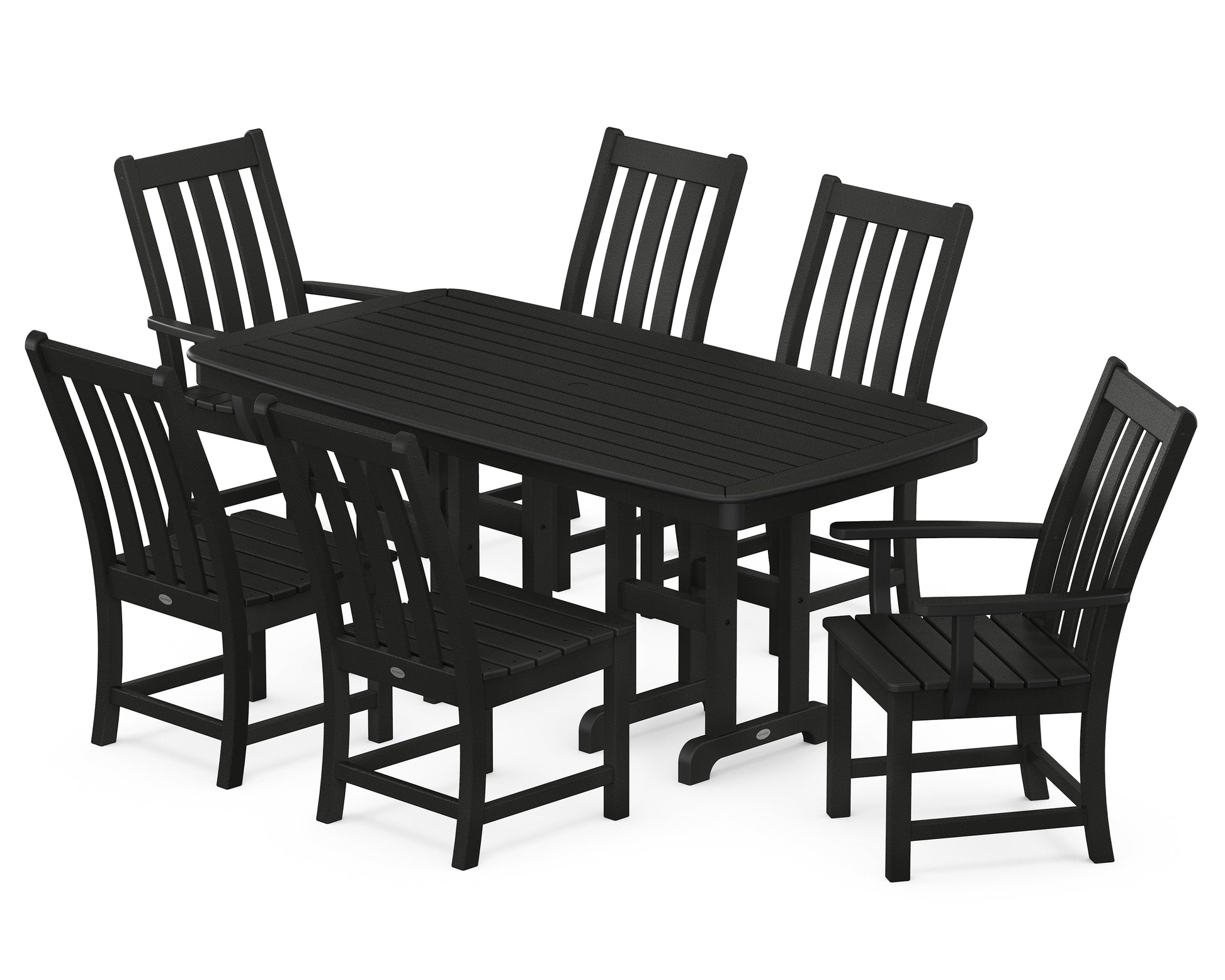 Add casual elegance to your outdoor dining space with the Vineyard 7-Piece Dining Set. Your family can enjoy many meals around this all-weather set in any season, year after year. The conversation will flow easily and last long into the evenings as your family stays comfortable on the stylish dining chairs thanks to the curved backs and contoured seats. The chairs complement the spacious dining table, which is sturdy enough to hold large meals and versatile enough to play the centerpiece to a sophisticated dinner party or a relaxed breakfast gathering.