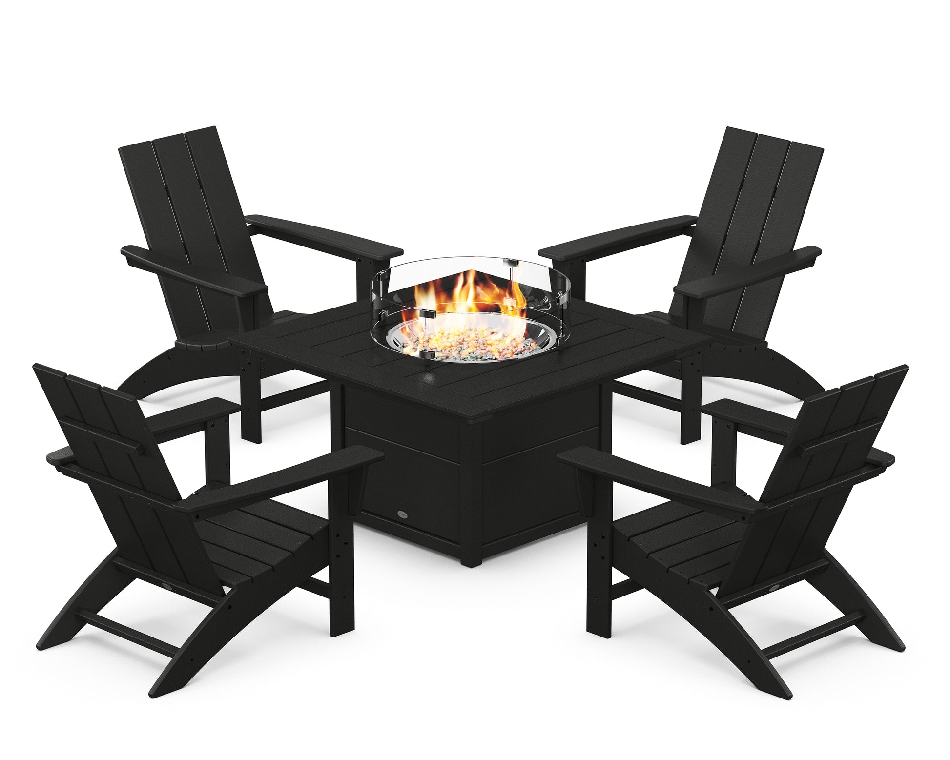 Modern 5-Piece Adirondack Chair Conversation Set with Fire Pit Table