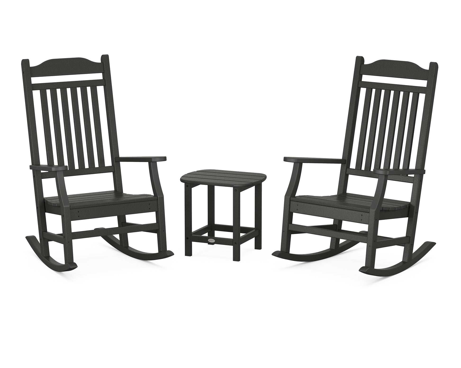 Transform your front porch with the Cottage Rocking Chair 3-Piece Set. Two cozy rocking chairs give you plenty of leg and back support thanks to the contoured seat and arms, so you can sit comfortably for hours. The versatile side table keeps drinks and snacks within reach, or you can style it with your favorite outdoor plant.