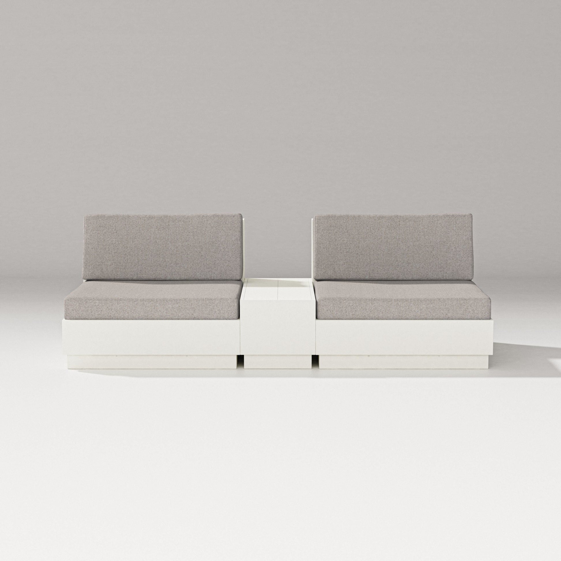 Elevate's small sectionals are designed for urban and compact spaces seating one to two people. Kick up your feet, or add a seat — the choice is yours. Shown here with 2 Modular Armless Chairs and 1 Modular End Table.