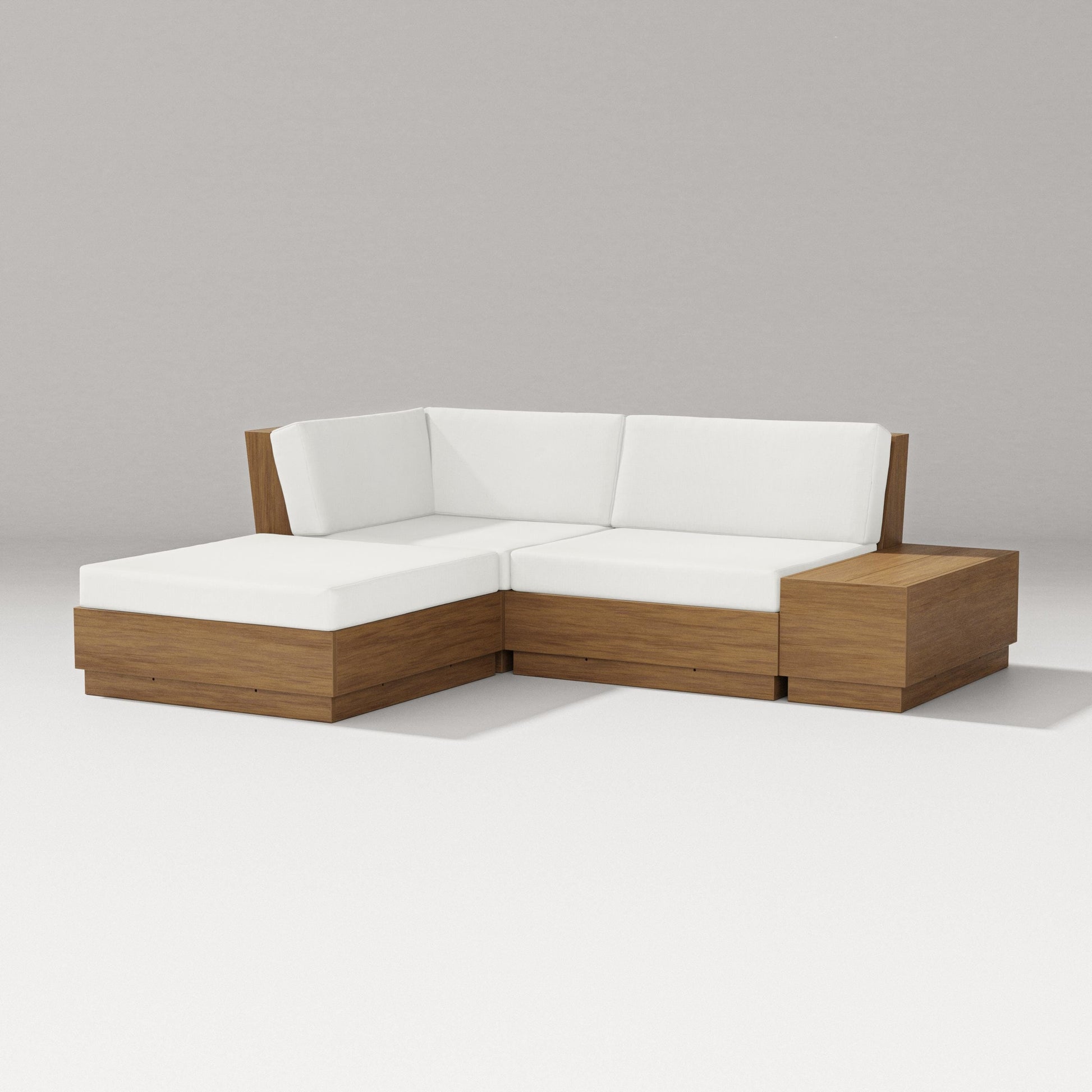 Elevate's small sectionals are designed for urban and compact spaces seating one to two people. Kick up your feet, or add a seat — the choice is yours. Shown here with 1 Modular Corner Chair, 1 Modular Armless Chair, 1 Lounge Ottoman, and 1 Modular End Table.