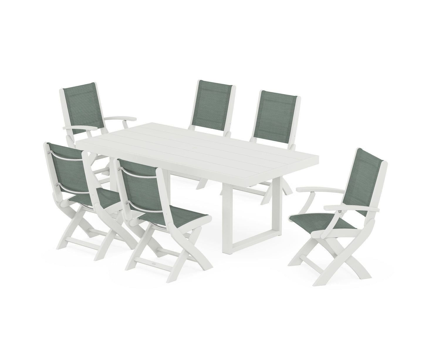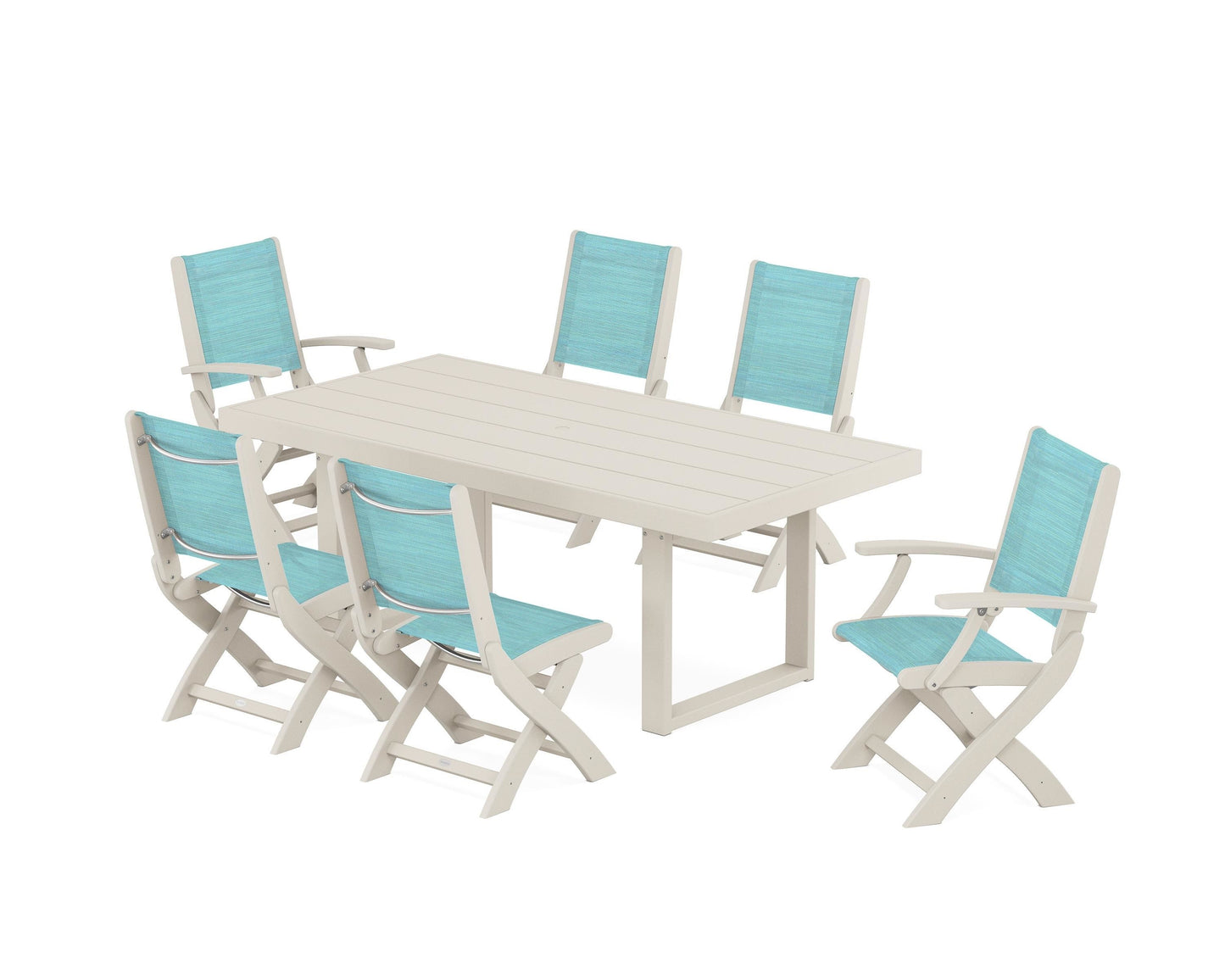 Coastal Folding Chair 7-Piece Dining Set with Trestle Legs