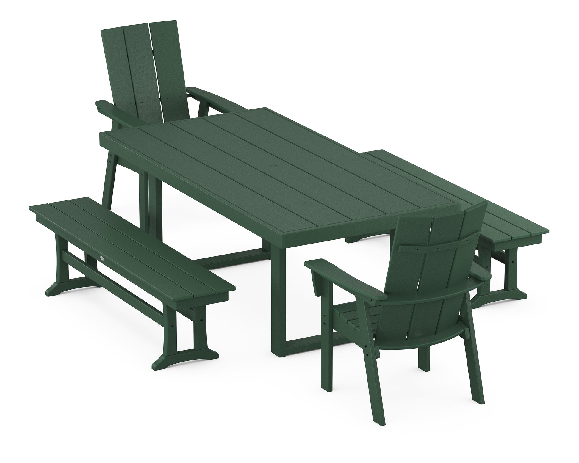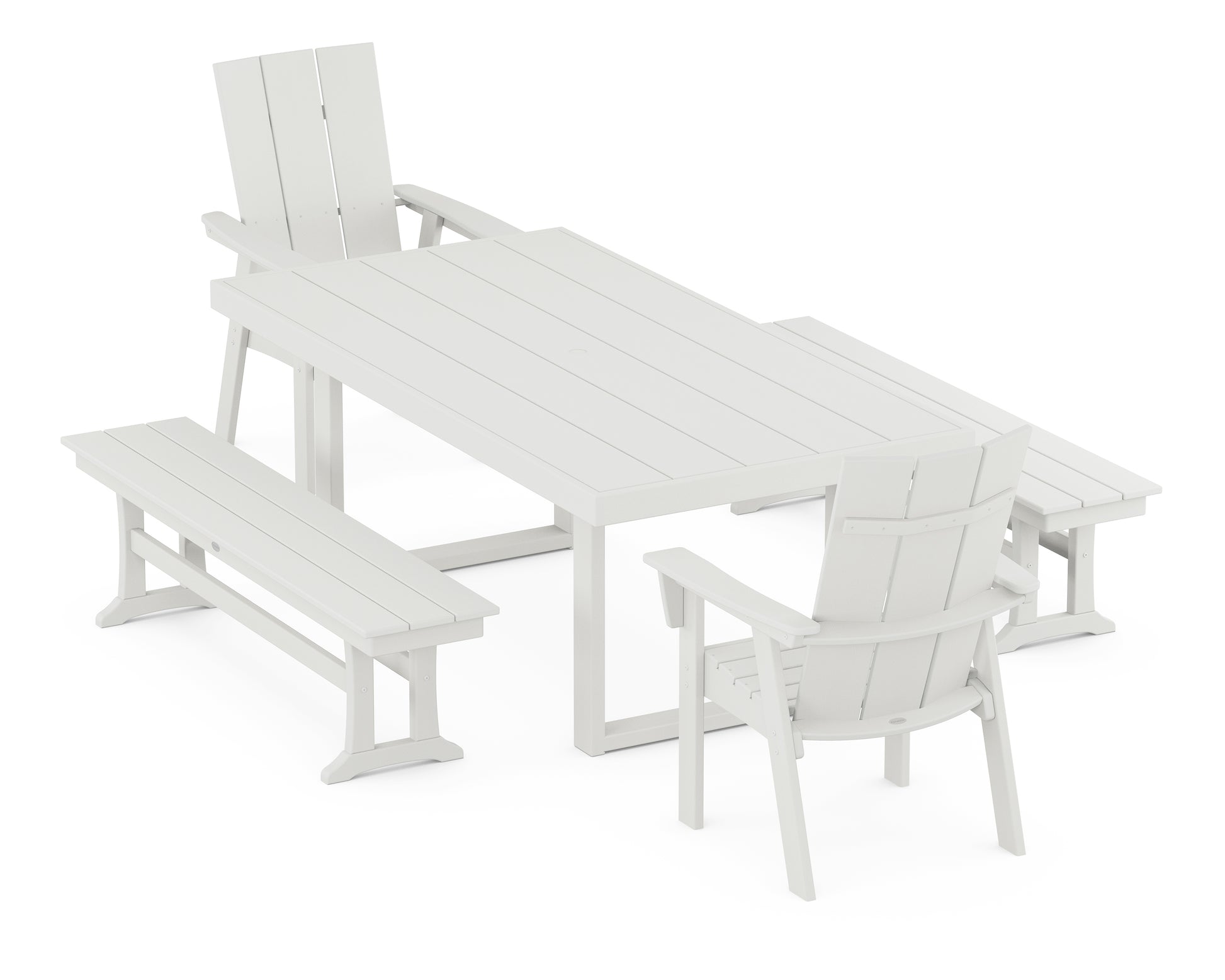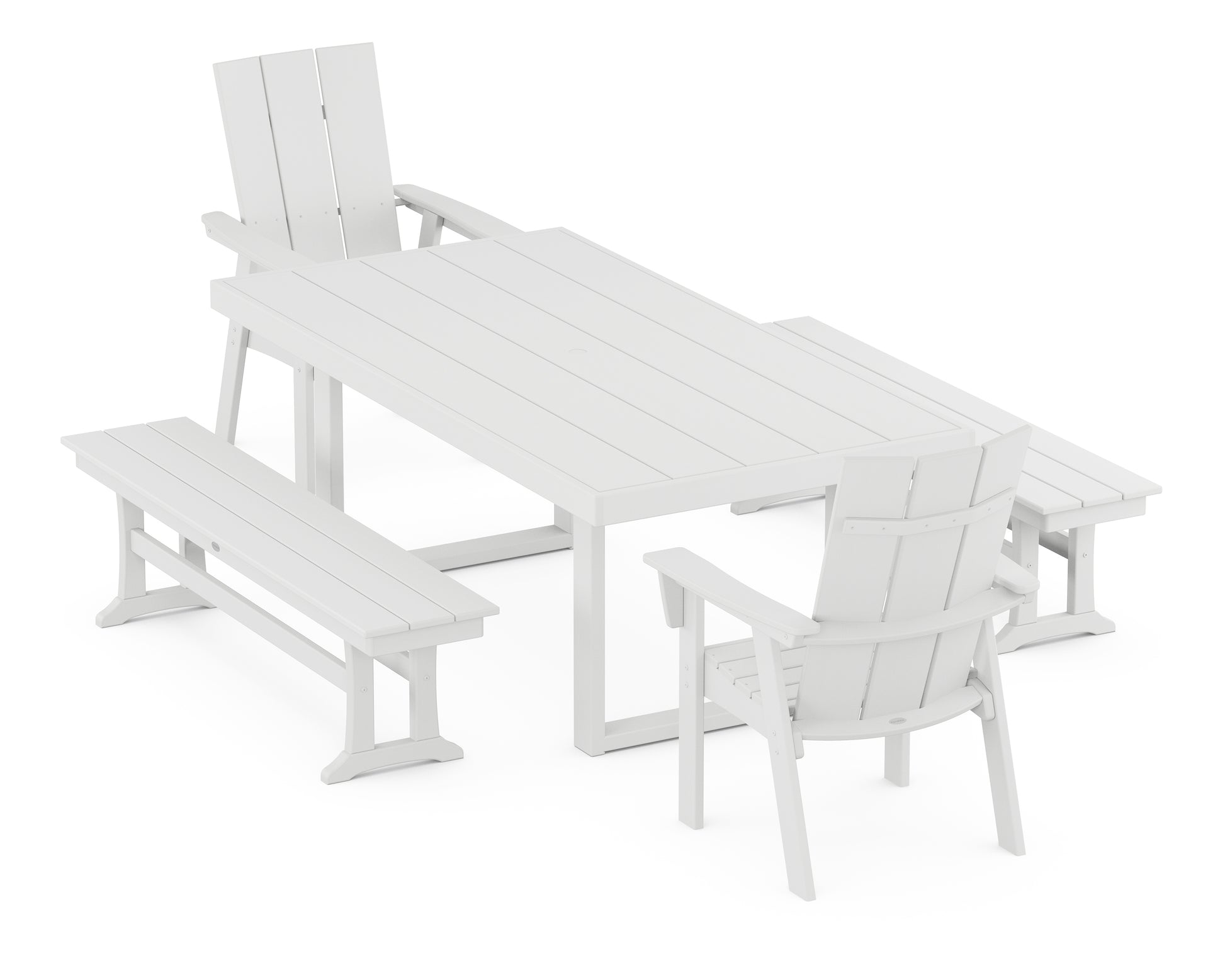 Modern Curveback Adirondack 5-Piece Dining Set with Benches