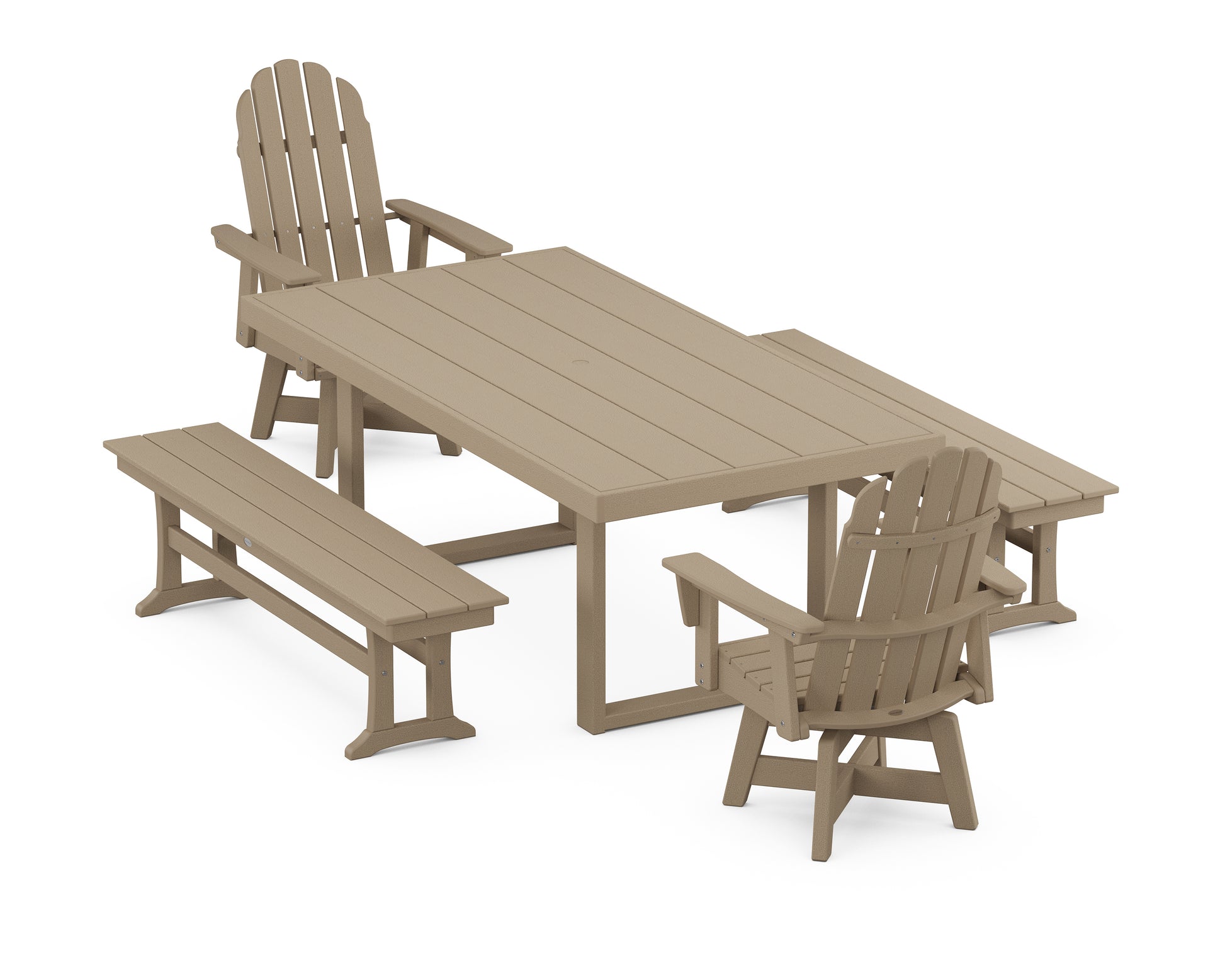 Vineyard Curveback Adirondack Swivel Chair 5-Piece Dining Set with Benches