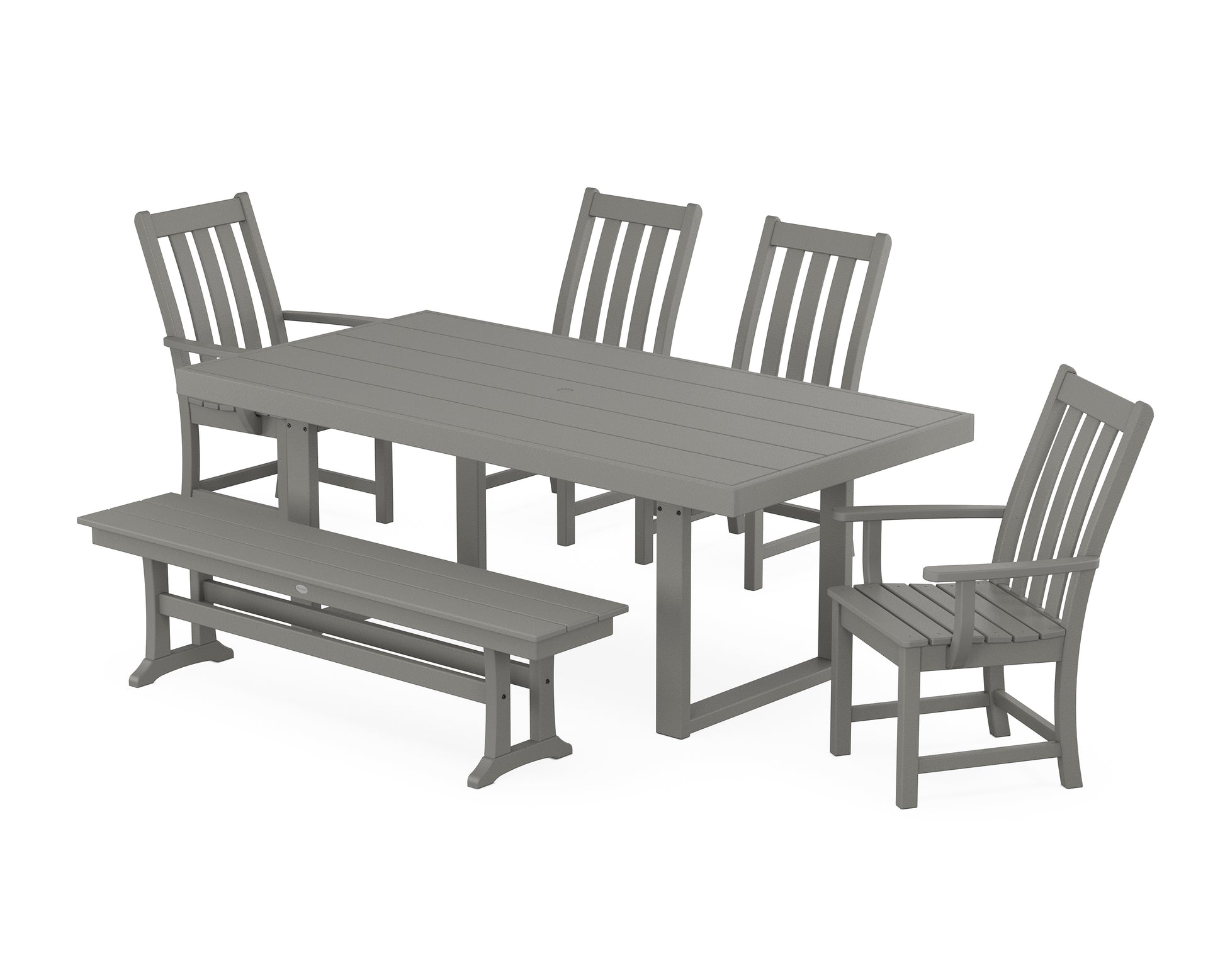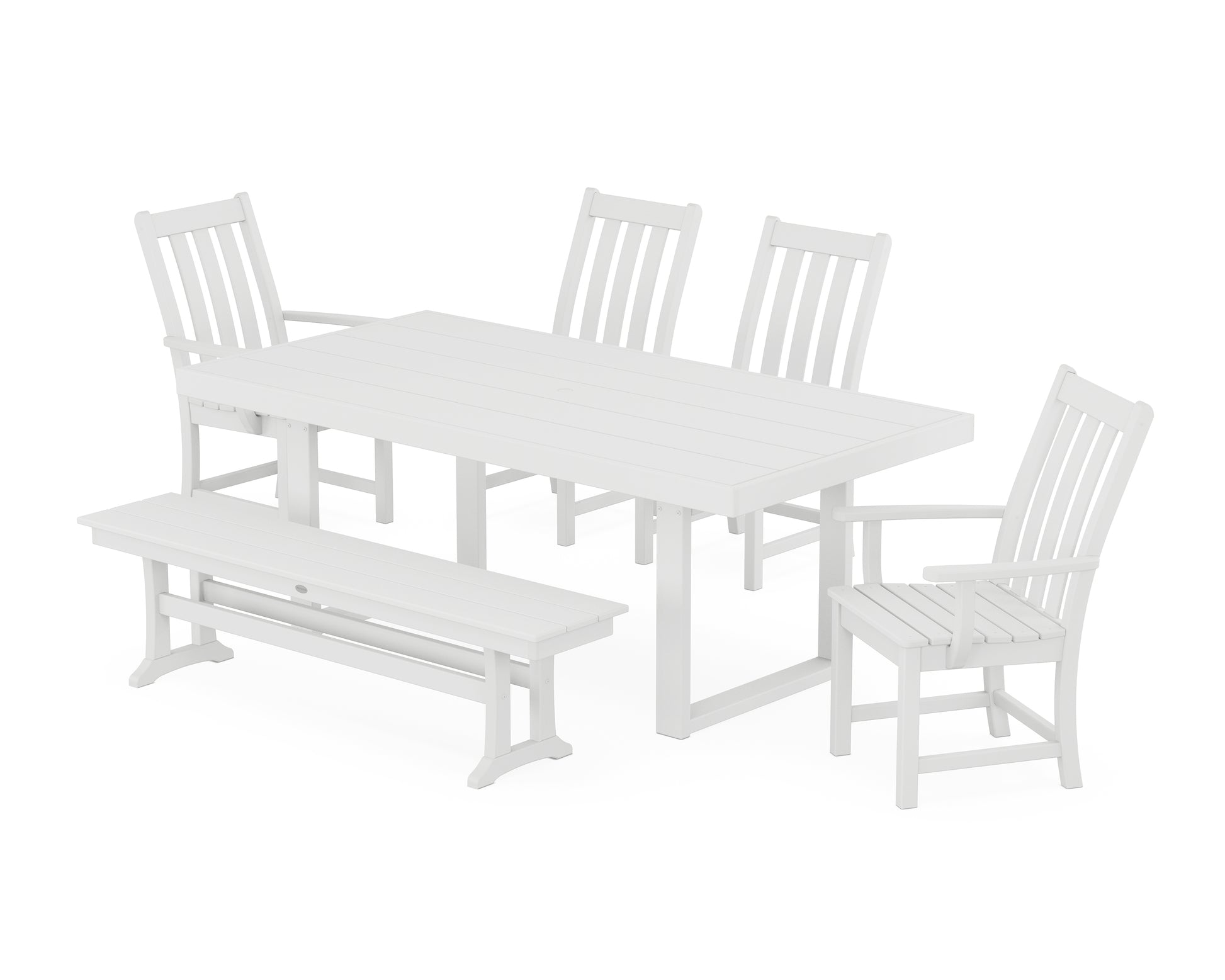 These enduring designs balance classic style with supportive, stay-all-day comfort, encouraging lingering conversations and more meals alfresco. Ideal for larger gatherings, the Vineyard 6-Piece Dining Set with Bench includes a rectangular dining table, two side chairs, two armchairs, and a bench. We'll raise a glass to that.