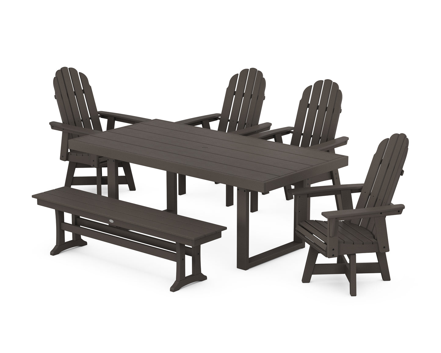 Vineyard Curveback Adirondack Swivel Chair 6-Piece Dining Set with Bench