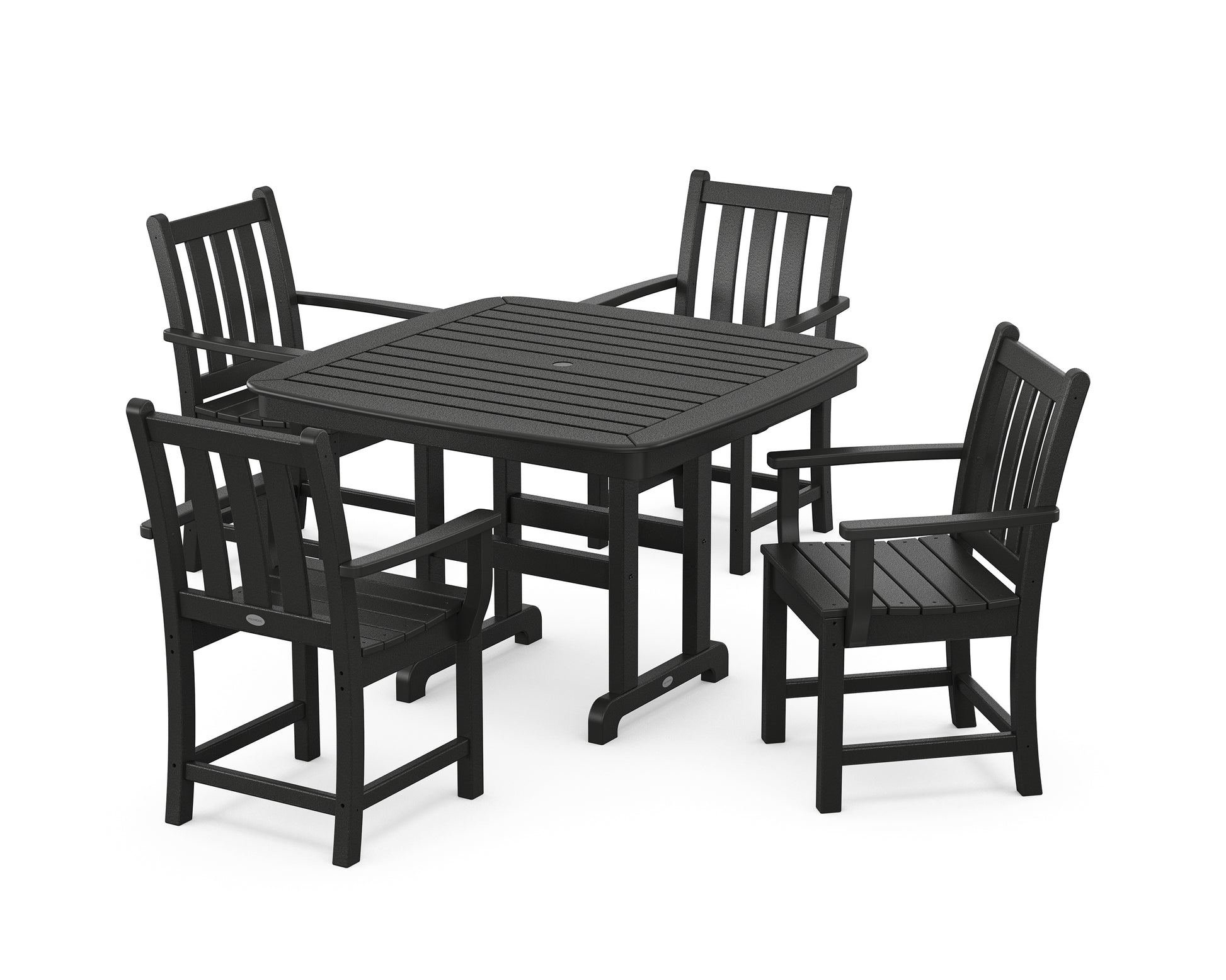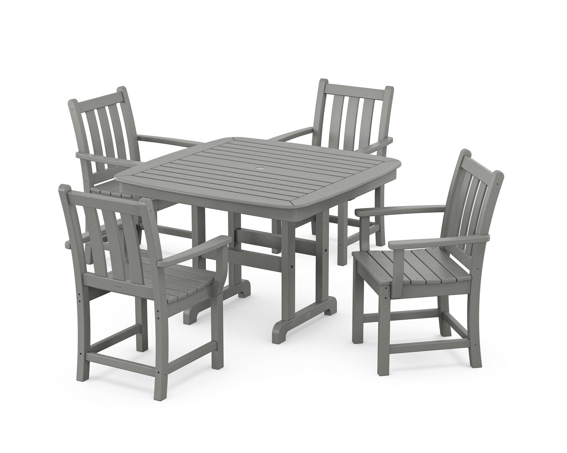 Add grace and elegance to your patio, porch, or terrace with the timeless charm of our Traditional Garden Collection. The classic style and understated silhouettes blend seamlessly with any backyard design, from formal to free-flowing. With year-round durability and colors that won't fade in the sun, the low-maintenance Traditional Garden 5-Piece Dining Set with Trestle Legs features four armchairs styled around a square dining table.