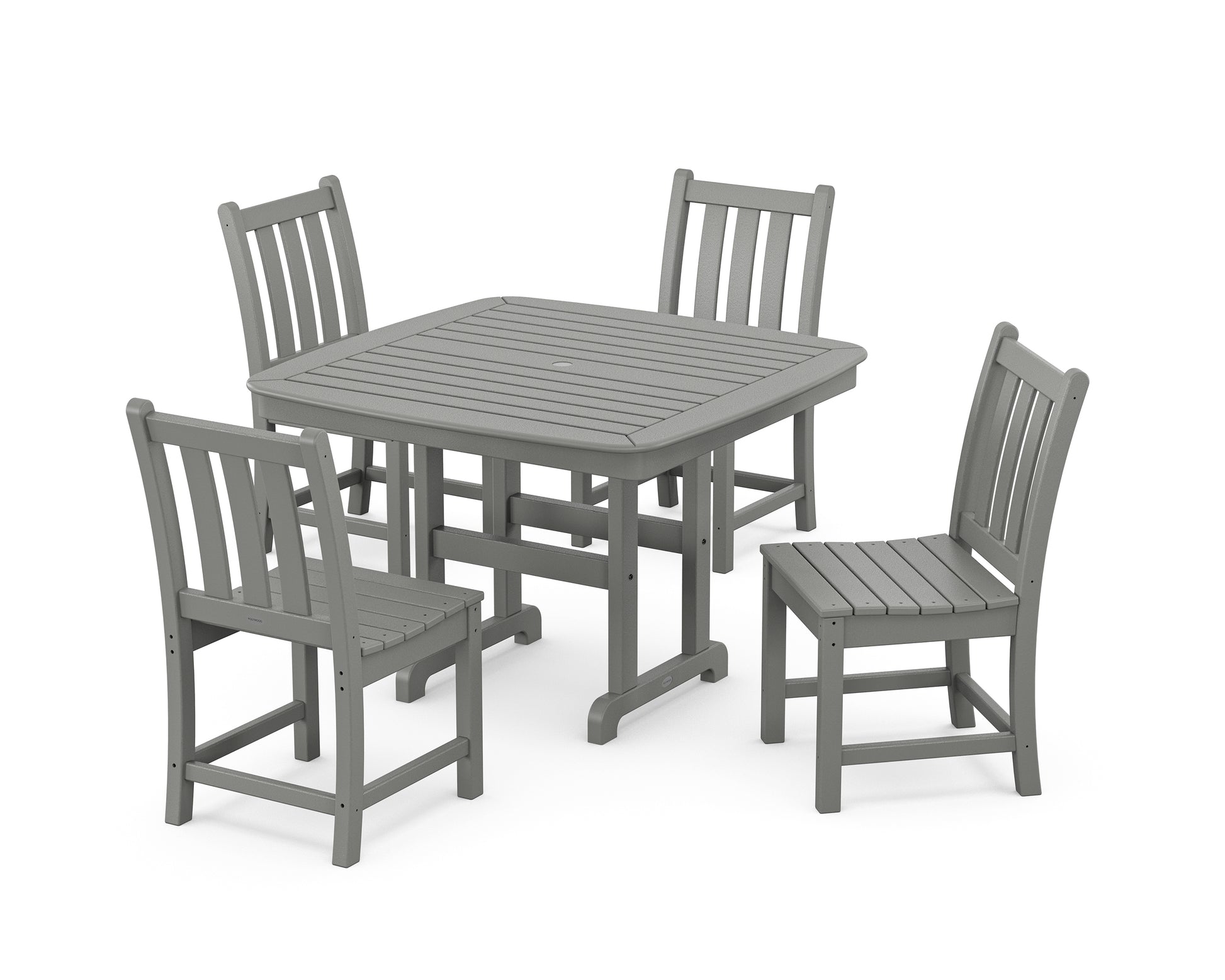Add grace and elegance to your patio, porch, or terrace with the timeless charm of our Traditional Garden Collection. The classic style and understated silhouettes blend seamlessly with any backyard design, from formal to free-flowing. With year-round durability and colors that won't fade in the sun, the low-maintenance Traditional Garden Side Chair 5-Piece Dining Set with Trestle Legs features four side chairs styled around a square dining table.