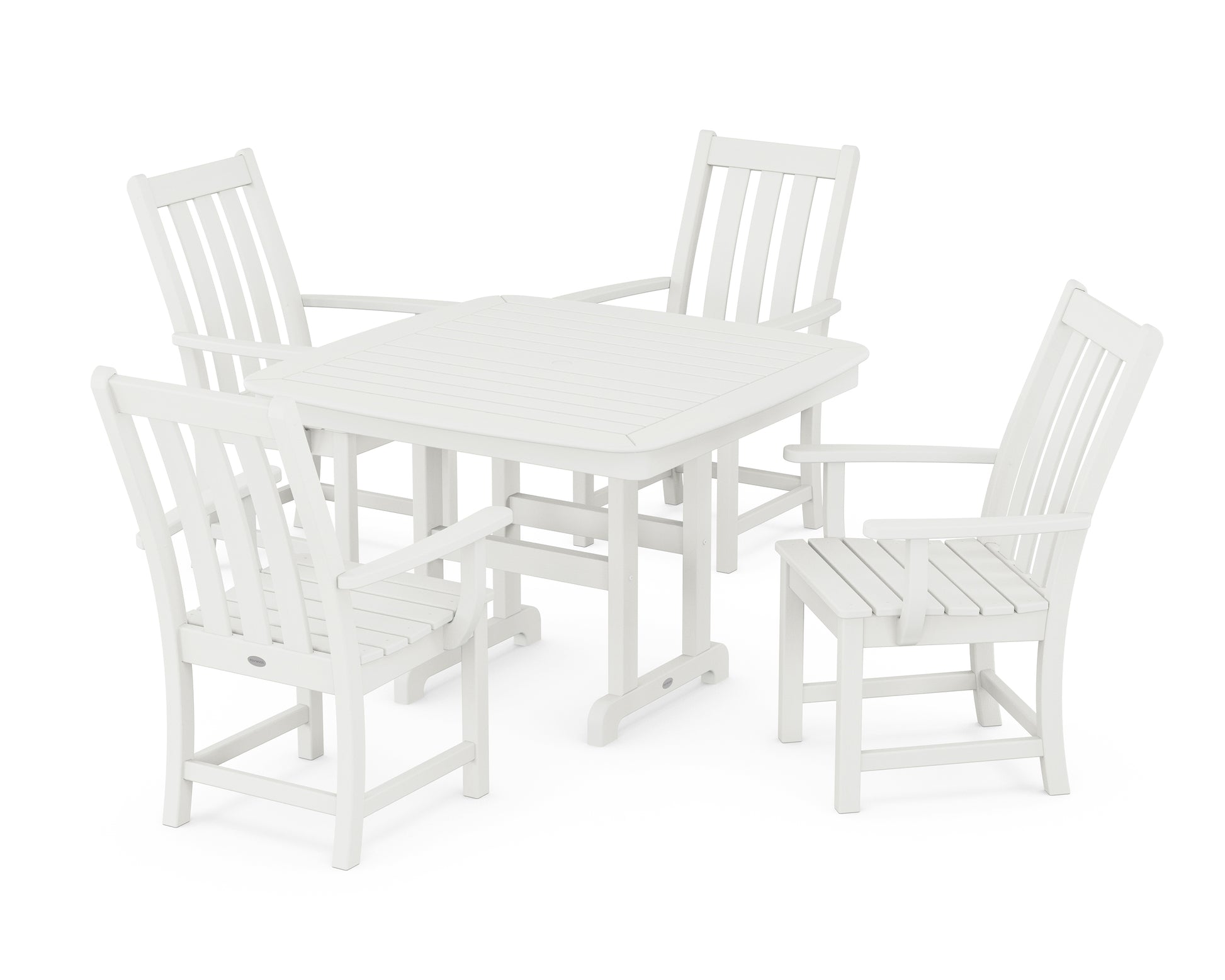 These enduring designs balance classic style with supportive, stay-all-day comfort, encouraging lingering conversations and more meals al fresco. Ideal for smaller gatherings, the Vineyard 5-Piece Dining Set with Trestle Legs includes a square dining table and four armchairs. We'll raise a glass to that.