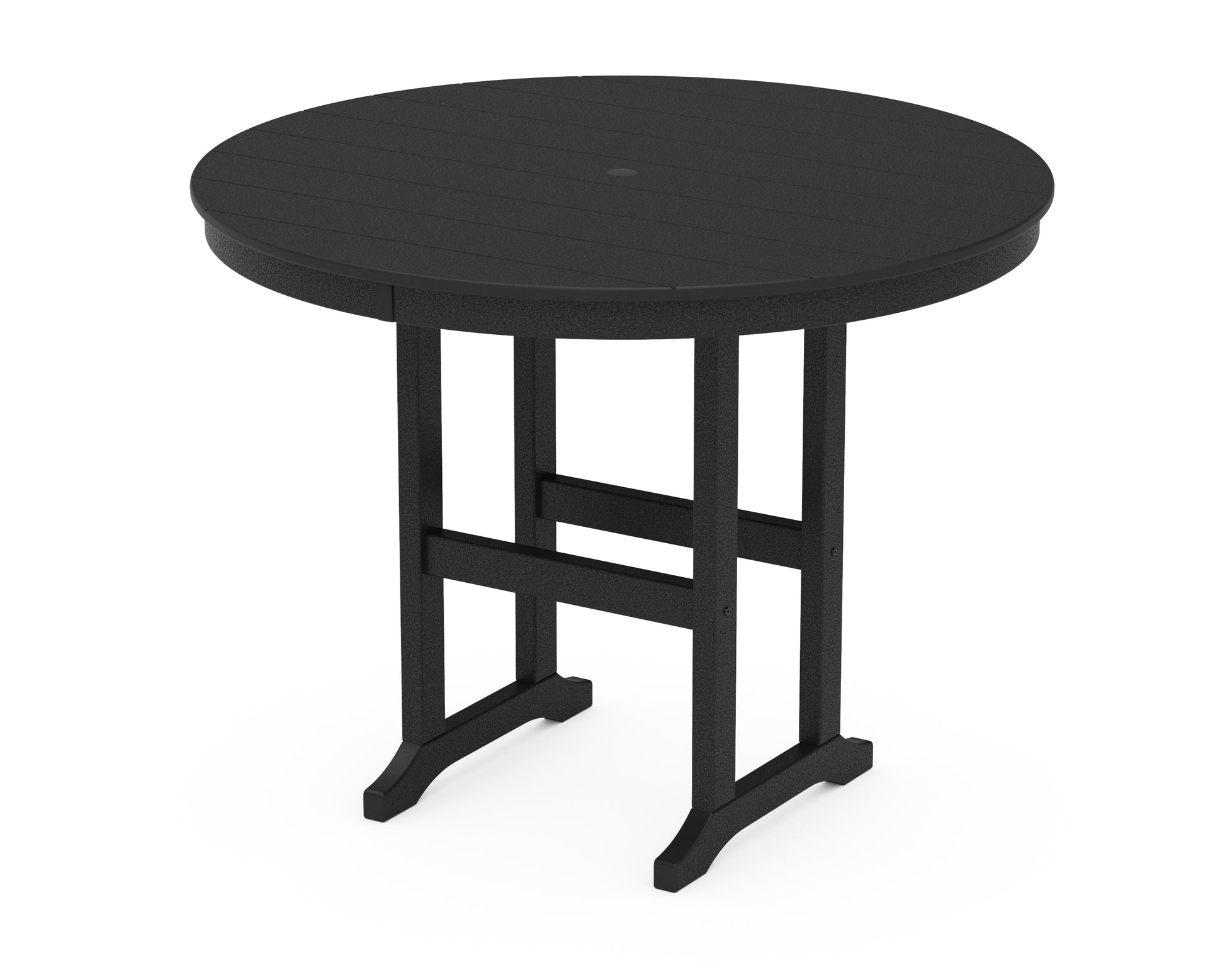 Designed for alfresco entertaining in any season, the 48" Round Farmhouse Counter Table levels up any occasion, from morning coffee dates to after-work libations. This tall table offers plenty of room to serve up tasty dishes and drinks with its round tabletop and slim trestle base. Gather some POLYWOOD counter-height chairs to create the dining set of your dreams.