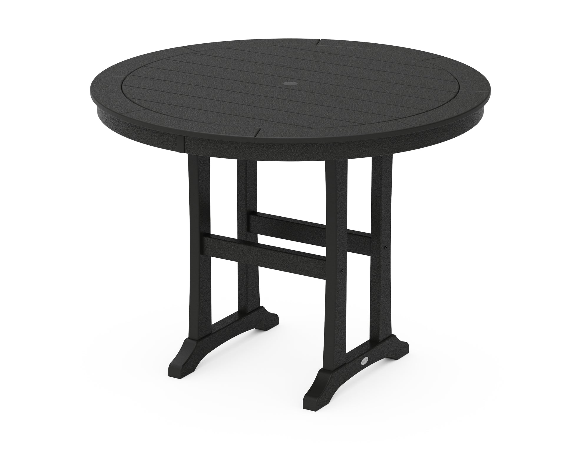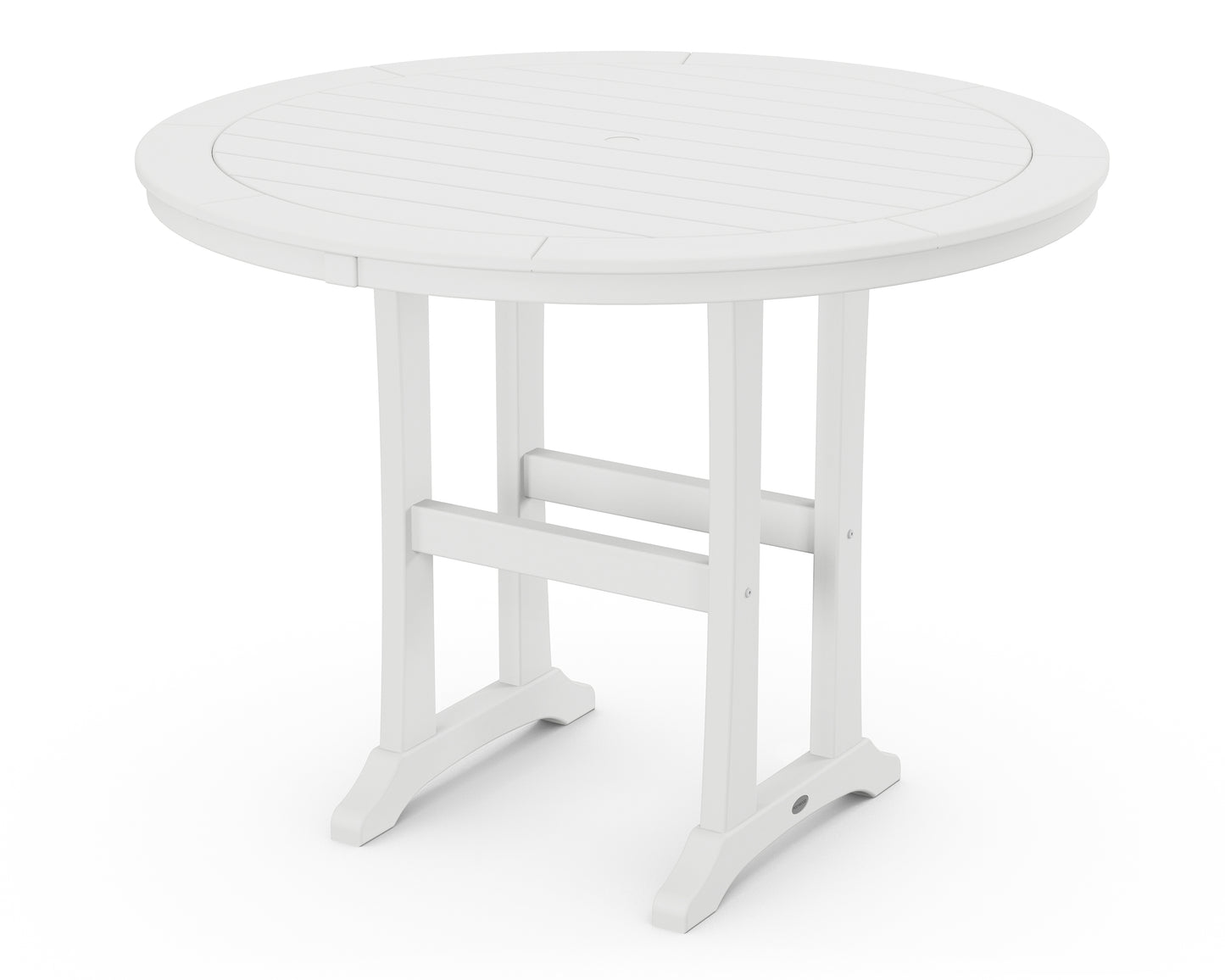 Add height and function to your outdoor patio or porch with the Nautical Trestle 48" Round Counter Table. This all-weather table seats four guests for drinks, appetizers, or game night on a round tabletop with plenty of leg room underneath. To complete the look, choose from a variety of POLYWOOD counter chairs; this durable counter-height table pairs well with many different chair designs.
