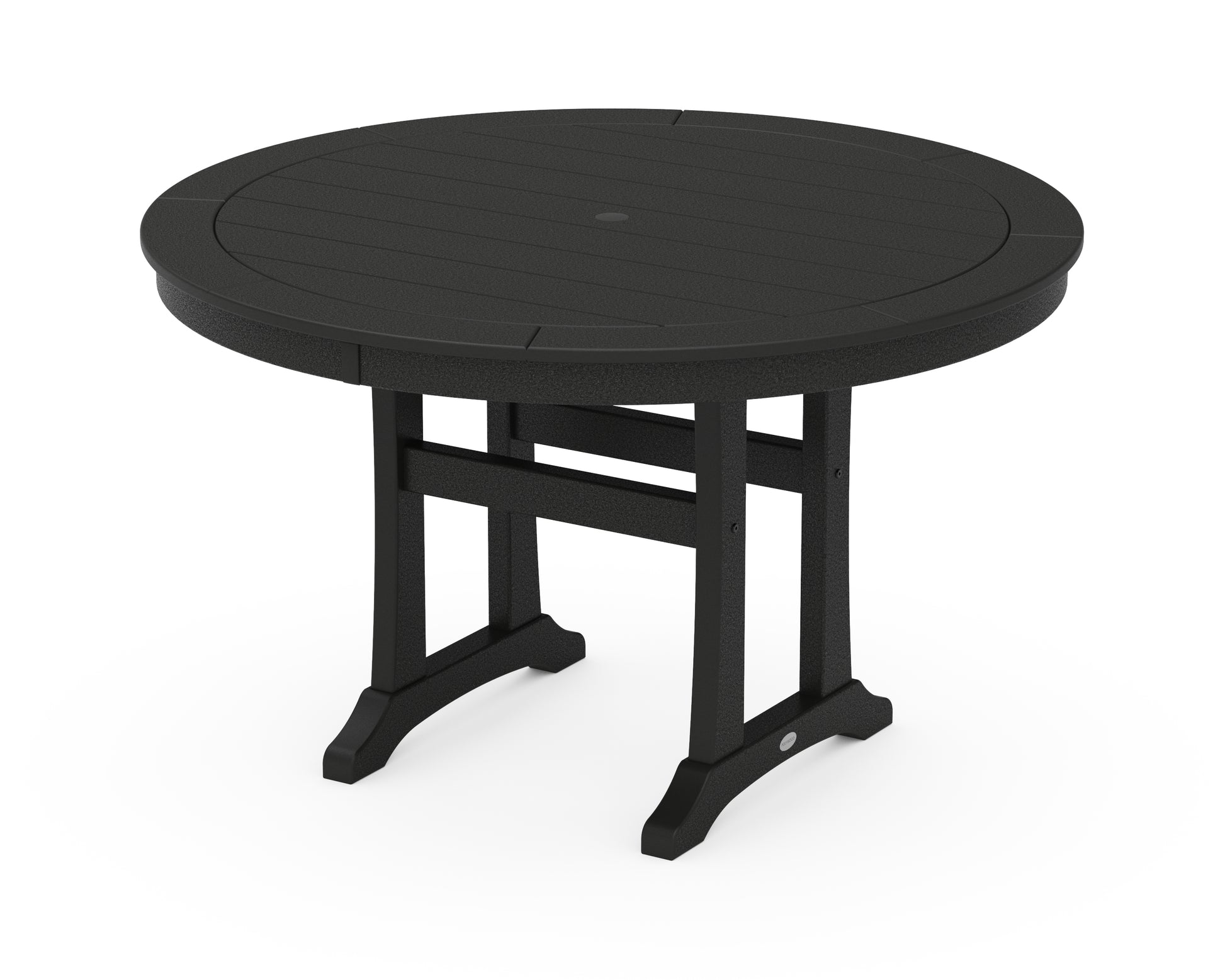 If you want to make your outdoor dining area stand out, make the Nautical Trestle 48" Round Dining Table its centerpiece. This attractive all-weather table easily seats four and can stand up to any weather condition it's subjected to. This means you don't have to waterproof, paint, or stain this table to make it last — it's just fine on its own. Pair this durable table with outdoor dining chairs from the Nautical Collection to have a complete set that you and your loved ones can enjoy on your deck, patio, or porch year after year.