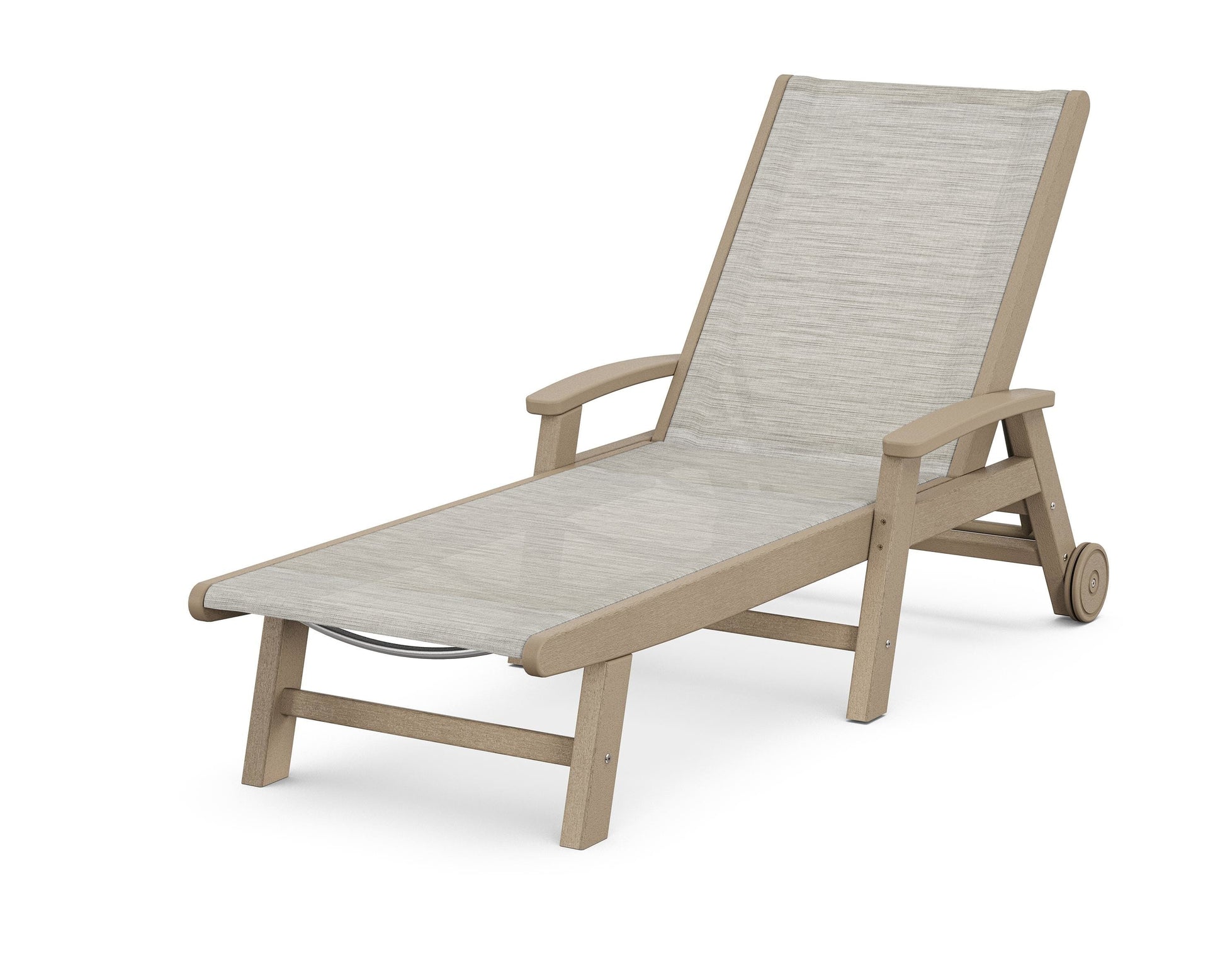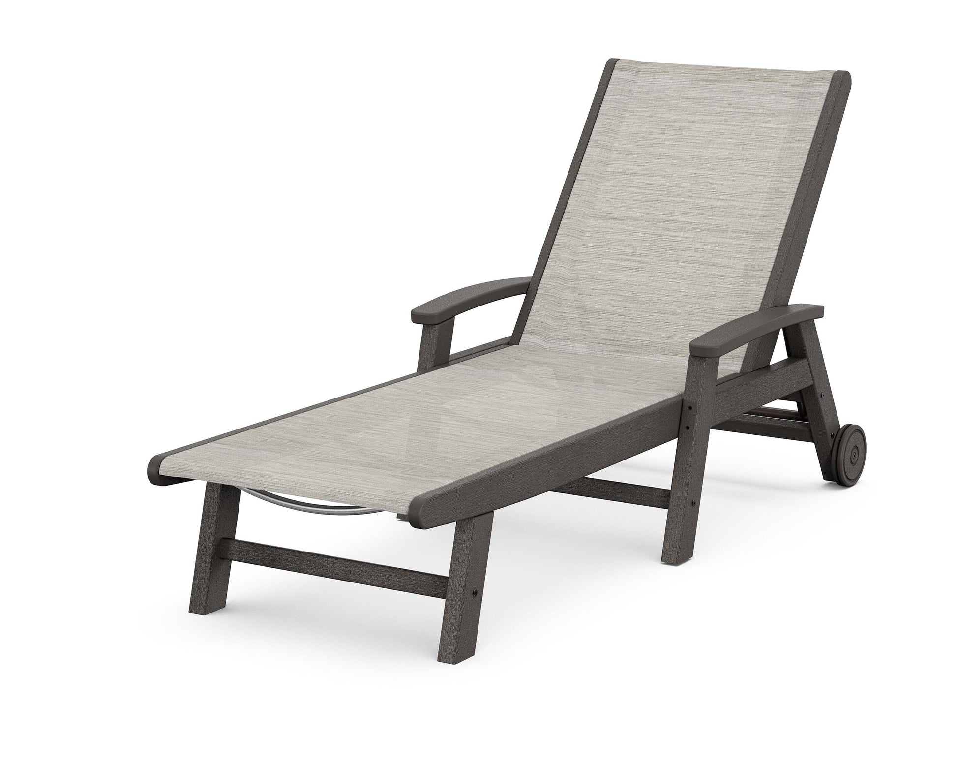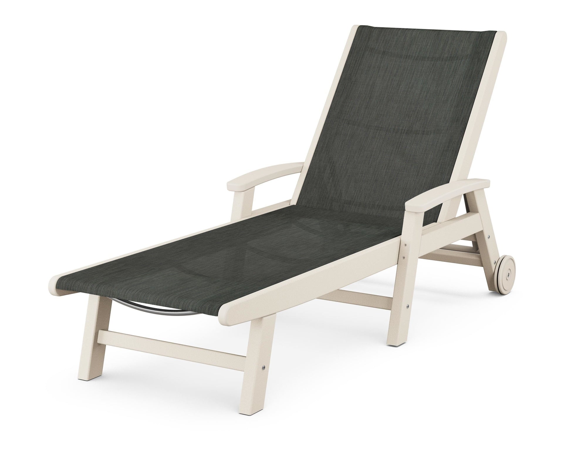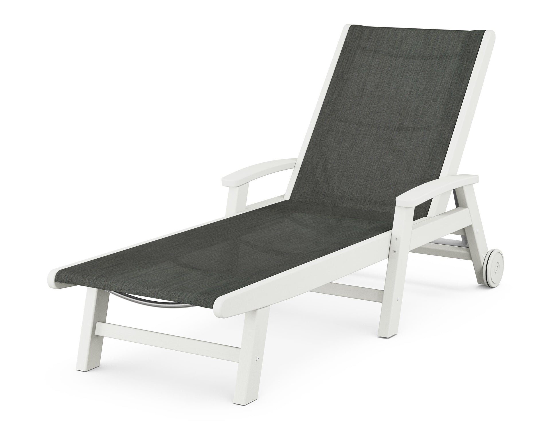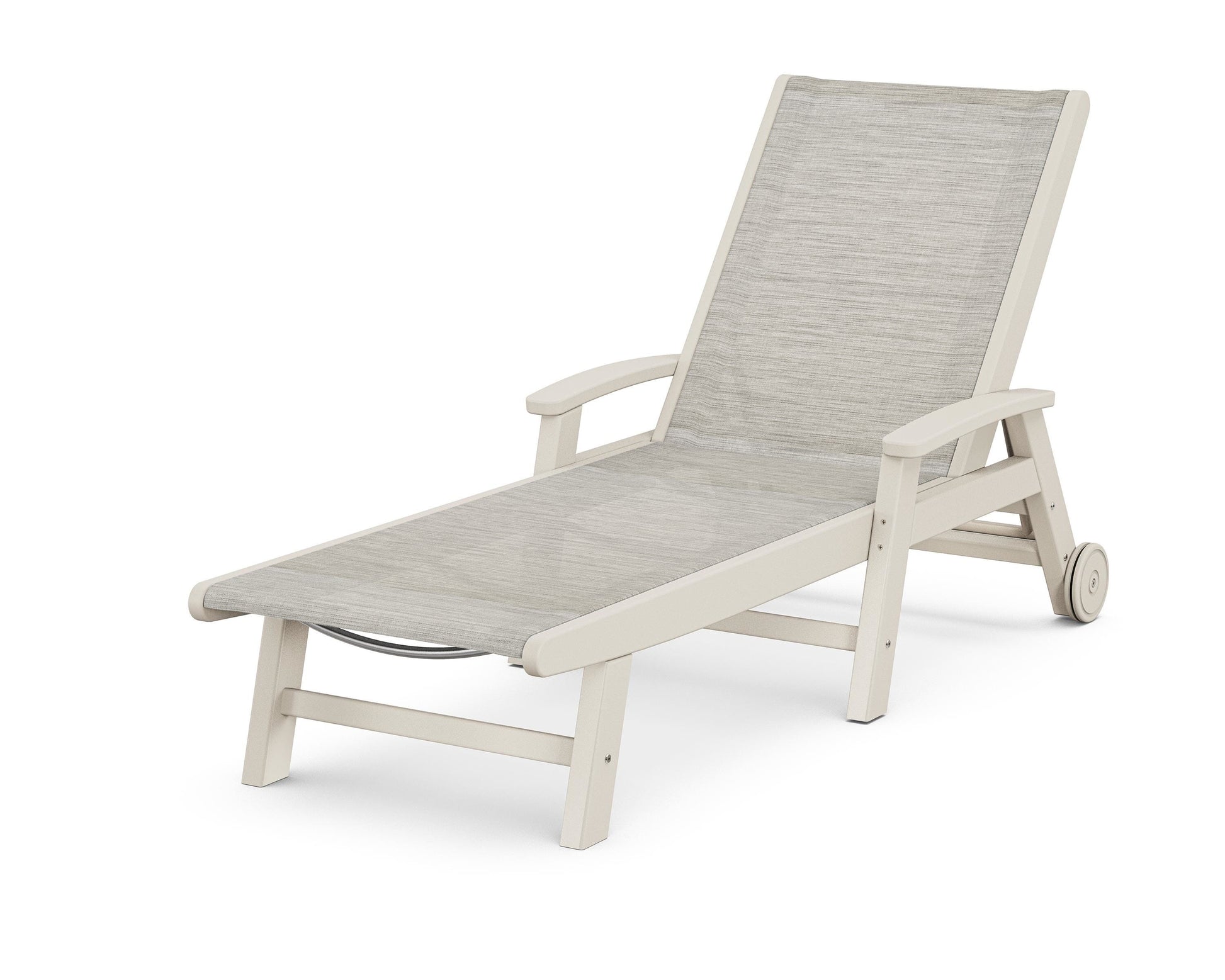 Lie back and relax in the Coastal Chaise with Wheels, fitted with a breathable fabric sling for optimal comfort. Conveniently equipped with wheels, you can easily move your all-weather chaise to wherever the sun takes you. Constructed out of durable HDPE lumber, it has the look of painted wood without the necessary maintenance, ensuring a lifetime of enjoyment.